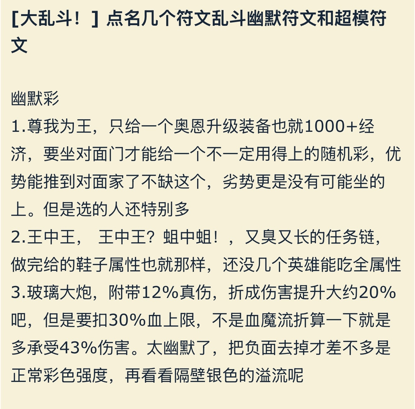 点名几个海克斯大乱斗的幽默符文和超模符文。英雄联盟