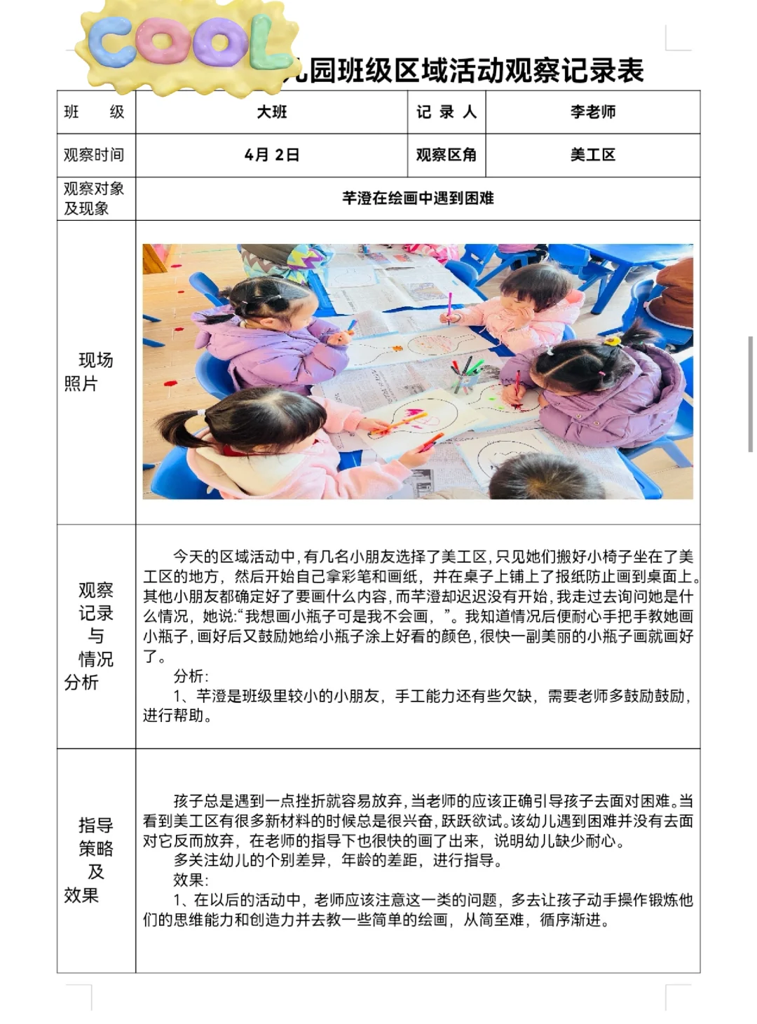 幼儿园老师 幼师 幼儿园 观察记录 幼教分享 区域观察记录 区域观察 幼师必备
