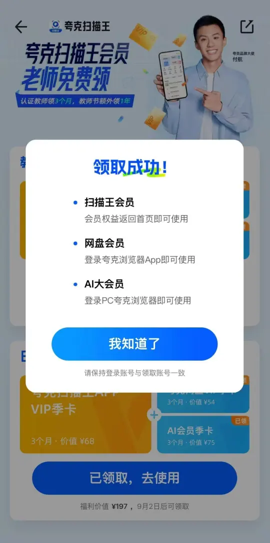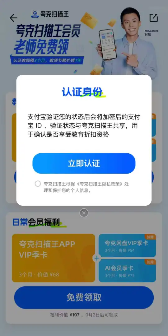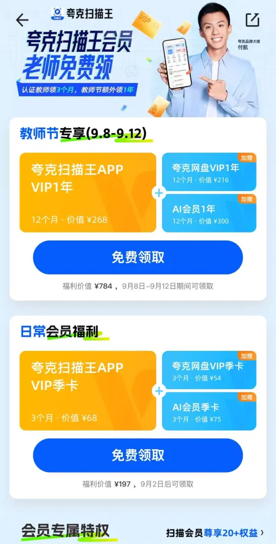 时间过得真快,又到一年教师节,有教师资格证的各位,教师节福利千万不能错过夸克扫描王APP的会员,有了会员真的很方便,为我们老师大大节省了时间。