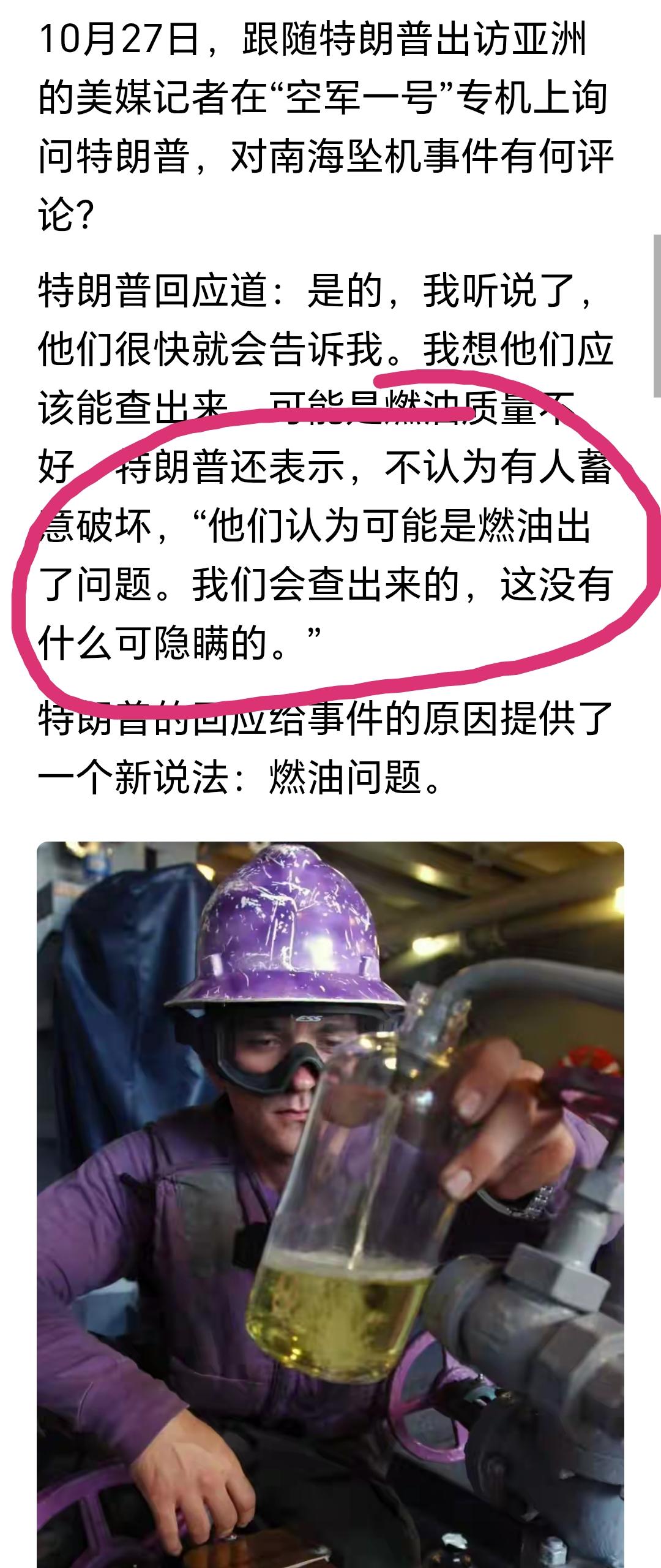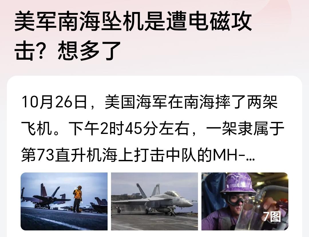 关于榜一大哥阿美丽卡海军来南海参拜观音姐姐一上来就刷两架大飞机的事又有了新说法。 有网友说是它们受到了电磁攻击,所以才掉海里的。 税宗认为根本不可能。 这一次我站税宗。 税宗云淡风轻地说他知道了,他不认为是有人蓄意破坏,认为可能是燃油质量原因。 毕竟史密斯专员再怎么黑良心,往飞机燃油里加水他也还是要考虑让飞机飞起来,至少不要让人看出来。这次可能是某个同伙叶子抽多了,水加多了。 所以税宗的话更符合阿美丽卡现在的现状,可信度更高。 电磁攻击这就是听风的蚕的评书听多了。我们是爱好和平的国家,这样的事情我们怎么可能做呢?再说他们不是还没进南海嘛。所以肯定不是。 看到这种事情给阿美丽卡海军鼓个掌加加油就行了,别一天胡思乱想。[吃瓜群众] 哦,你问我怎么看美军在南海事故频发?我怎么知道,但我估计是惹着观音姐姐午休了。[吃瓜群众] 点右上角关注我,我们一起去看这个魔幻的世界