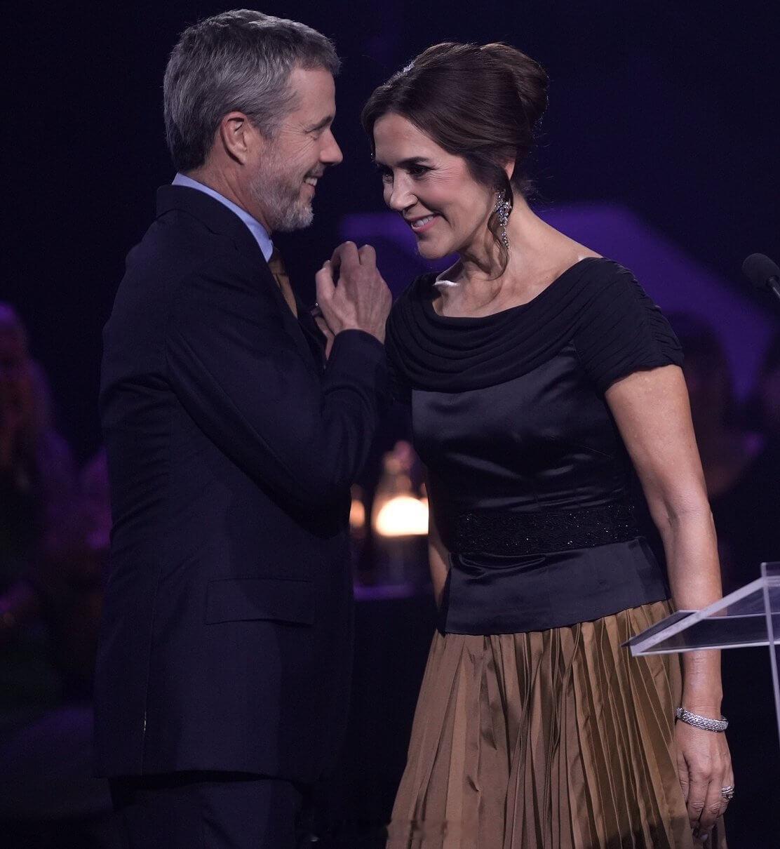 10.27 丹麦国王腓特烈十世和王后玛丽出席国王夫妇奖颁奖礼,玛丽黑色上衣来自BY MALENE BIRGER。不是很懂tony老师的思路