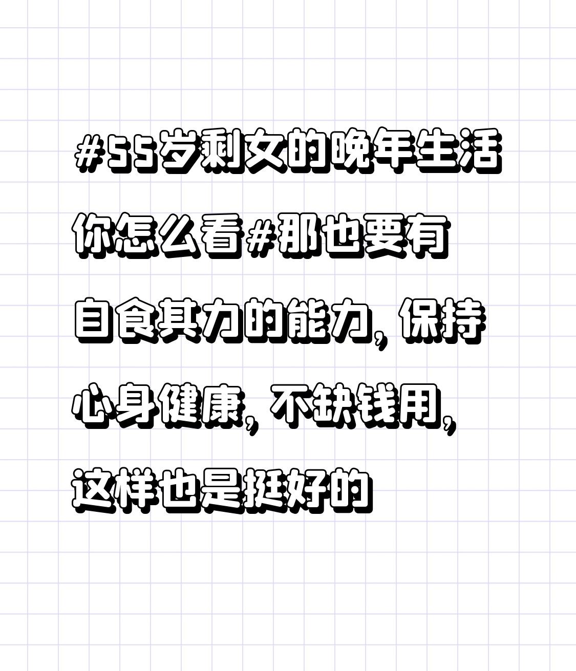 55岁剩女的晚年生活,要是能自食其力、身心健康、经济无忧,那绝对可以过得相当滋润。就像有位55岁的陈阿姨,45岁丧夫后既不跟子女住,也不再婚,自己独居。她有房,还有稳定退休金和一笔积蓄,生活自己做主。 还有些55岁以上单身女性退休后,把生活安排得井井有条,健身、和好友喝茶,三餐精心准备,过得精致又健康。也有人选择去子女家带孙辈,享受天伦之乐,成为子女后盾。所以,只要有能力,55岁剩女的晚年也能多姿多彩。