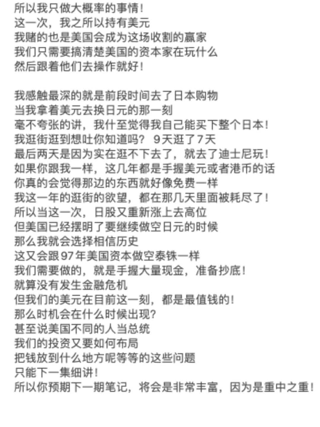 🍀所以同样是1万亿日元,现在只能兑换50亿美金了!
