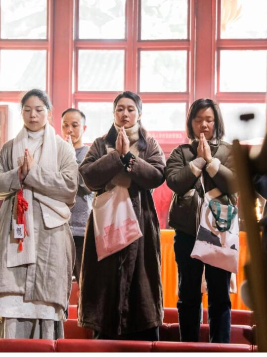 4. 烧香高举过头顶,再置于香炉,拜佛双膝跪,双手合十,磕头三次。🙇♀️