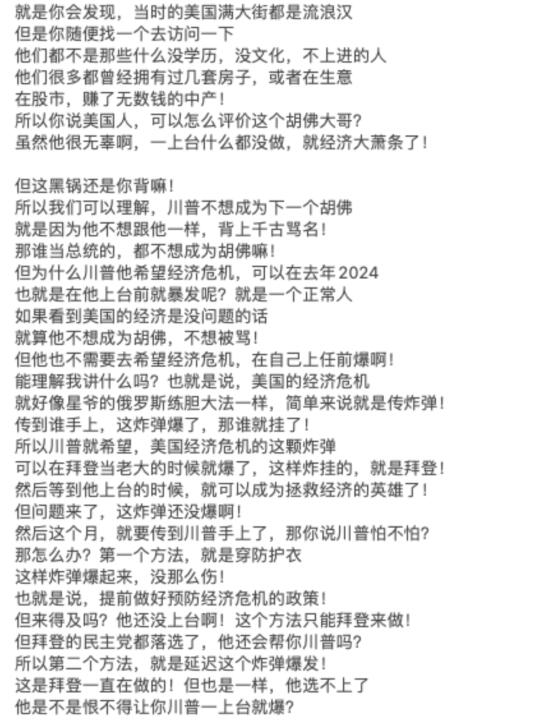 🍁但他也不需要去希望经济危机,在自己上任前爆啊!