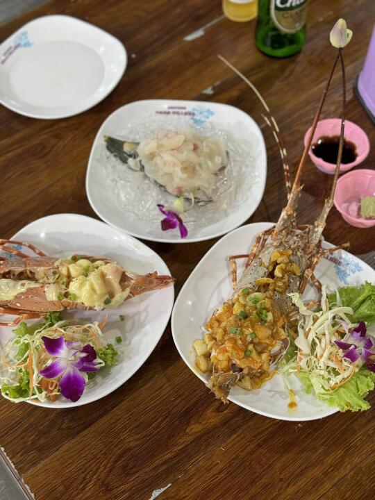 1️⃣6️⃣一定要去拉威海鲜市场吃海鲜!一定要砍价!对半砍!然后买好海鲜拿到饭店里加工!我们买了三只新鲜小青龙1200🐷还挺划算的!每家店的加工费基本是100🐷一公斤!