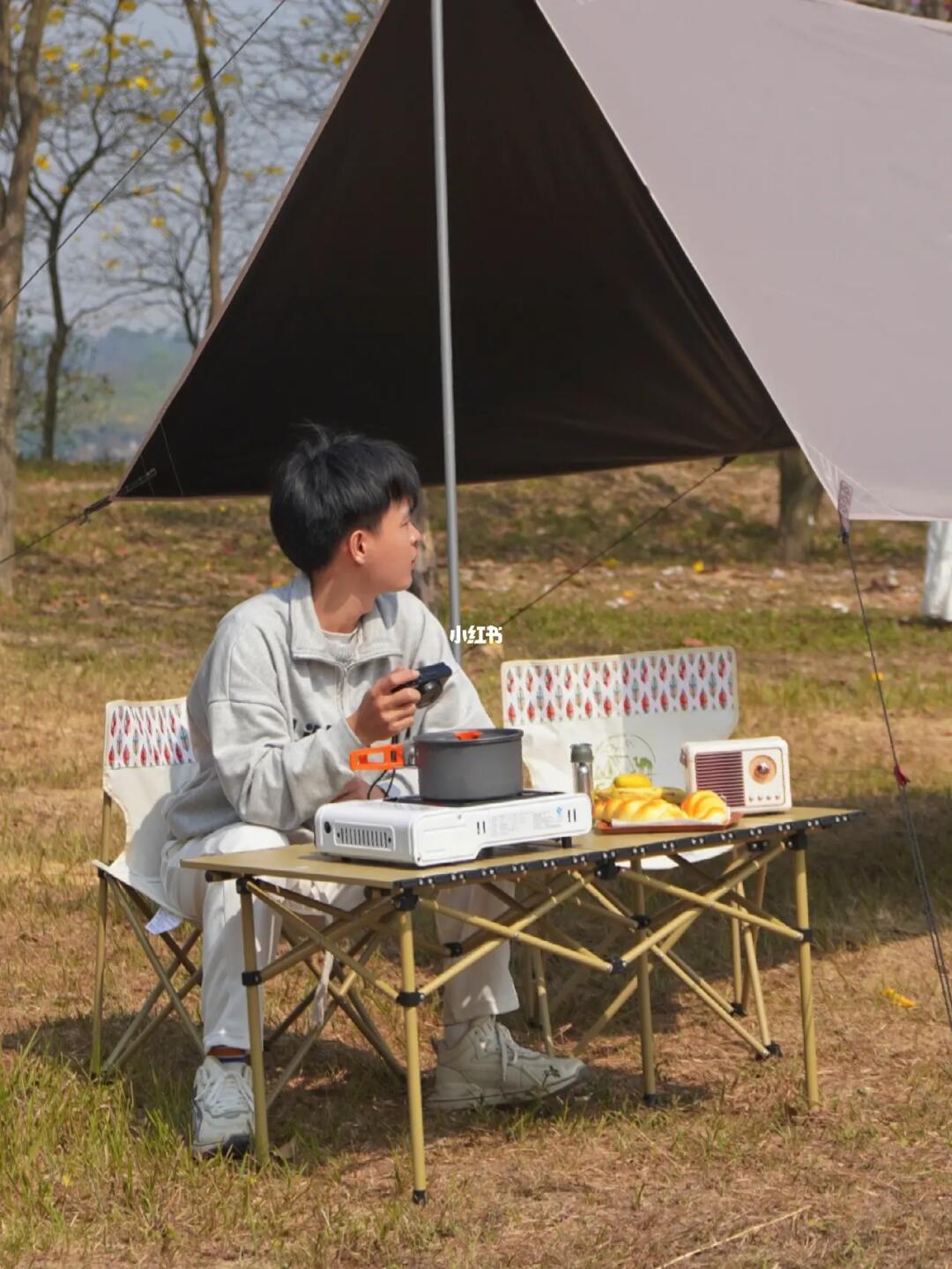 1⃣我们这次带上了500+一套的露营装备:黑胶天幕*1,卡式炉,铝合金长桌*1,折叠椅*2,氛围灯*1。真的好划算,质量还很抗造。