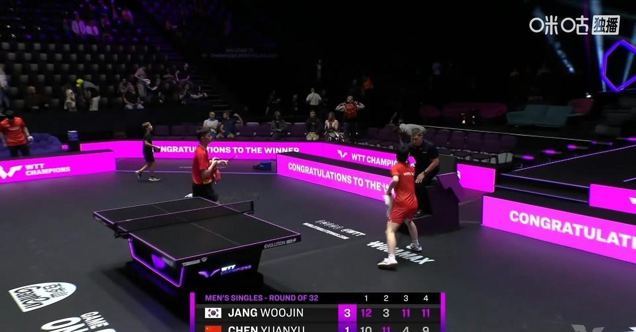 真是个鬼故事, 晚上国乒三场比赛全输了! 陈垣宇🇨🇳首轮惨遭淘汰! 昨日午夜,一场WTT冠军赛蒙彼利埃站男单1/16决赛结束了, 陈垣宇🇨🇳1-3不敌张禹珍🇰🇷,遗憾止步男单首轮比赛,制造了国乒选手首日三场全败的惨剧,四局比分为:10-12,11-3,4-11,9-11。 姜还是老的辣,陈垣宇在关键分的把握上还是差火候,关键分上张禹珍比他敢出手,决胜局陈垣宇从1-7都追到到9-9了,还是沒拿下。 其实打得可以了,陈垣宇毕竟还年轻,第一局应该拿下。 去年国乒在蒙彼利埃站男女线最好成绩都是四强,看看今年男线16强里还有没[捂脸]。