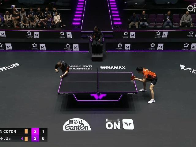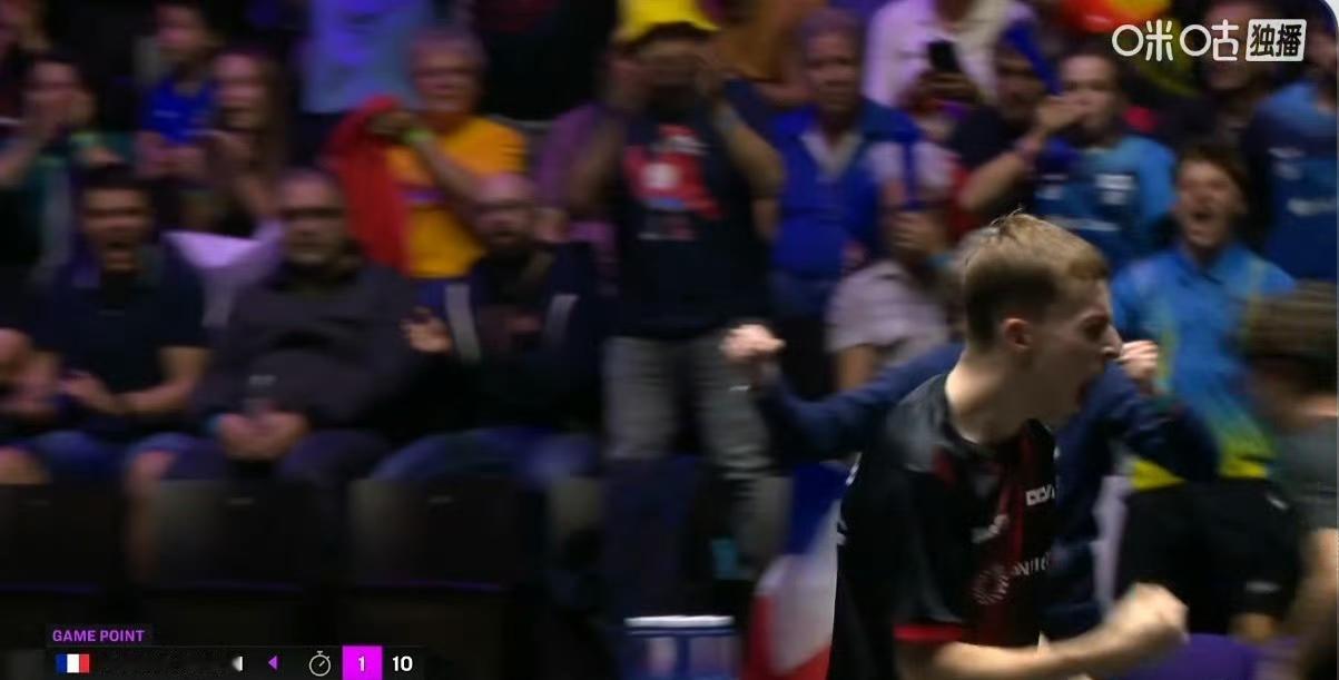 林昀儒鏖战五局首轮晋级! 今日凌晨两点多,随着法国观众口哨声、小喇叭声、锣鼓声的消失,喧闹的赛场终于安静下来,一场WTT冠军赛蒙彼利埃站男单1/16决赛也结束了, 中国台北名将林昀儒3-2力克主场作战的科顿🇫🇷,顺利晋级男单十六强,五局比分为:11-4,8-11,9-11,11-9,11-4。 随着看台上的偃旗息鼓,法国教练的表情也由喜转悲。 科顿主场完全不一样,跟前几天换了个人一样[允悲],最终科顿还是没能赢他的偶像,话说法国场边的女教练很像《的士速递》里面的女警察[笑哭]。 林昀儒确实厉害,抗住了对手的凶狠搏杀,抗住了对方主场作战的逆天氛围,心态真的真的稳定。 不得不说,他毕竟是林昀儒。