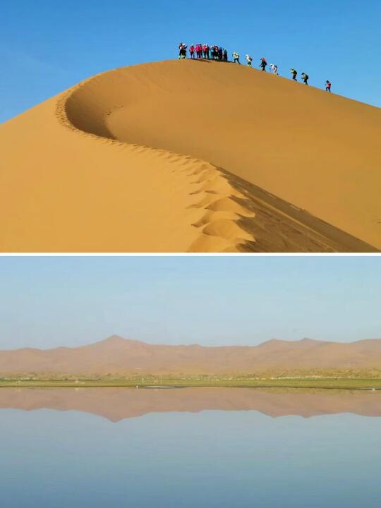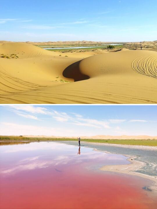 🌈“大漠孤烟直,长河落日圆”,这是所有人对沙漠的幻想,也许你想到的是它毫无生机,寸草不生,干燥而炙热,但当你真正面对它之后会发现它其实是魅力四射,有时也相当温柔,比如腾格里沙漠。这里除了细软的沙子外还有无数的湖泊、湿地和草场,还有骆驼、羊、马、甲虫、沙蜥等,晚上点起篝火,满目星河,早晚的日出日落,这时你会发觉周围的一切都是静止的,是防空心灵的好地方 👫🏼线图参考 D0出发地→银川/阿拉善 D1银川/阿拉善→梦想公路牌楼(徒步出发点,离银川约2小时离阿拉善约50分钟)→天鹅湖(候鸟家园)→乌兰湖营地19km(6-9月为红色,其他季节一般且水还有点臭) D2营地→苏海图湖/拍倒影(收过路费5,可绕行或买东西)→太阳湖营地12.5km(如要去月亮湖则多走6公里在月亮湖扎营) D3营地→攀爬高沙丘→月亮湖景区/绿植茂密或远观月亮湖(可少走3公里)→月亮湖接待中心18.5km(没有叫车服务,出发前需联系好) ⚠️Tips ♻️大多落地银川,第二天清早包车到梦想公路牌楼起点或搭滴滴顺风车,记得留好师傅电话来接,车站附近有很多揽客司机 ♻️每个湖都有营地,外面扎营20,省钱需在离湖远点的地方扎营。营地洗澡30-40。冬季有些营地撤了 ♻️所有的湖都有䃼给,可以轻装,泡面15,矿泉水5,雪碧可乐10,不想花冤枉钱就每天把䃼给带足 ♻️信号电信强移动弱,充电宝必带 ♻️早晚温差大,注意防寒保暖。贴身衣服要速干,衣服根据季度气候来带;穿高帮徒步鞋(鞋底要硬,不然太软走路吃力)+沙套或雪套;注意防晒,带上墨镜(雪山护目镜不会进沙)、帽子及面罩;雨衣必带 ♻️自己扎营在出行前带点结实的塑料袋,装上沙埋在沙里固定风绳,选在有植物的醒目位置,防止越野车突然出现 ♻️想出片带上无人机,所有照相设备做好防风沙工作 ♻️月亮湖景区设施比较齐全,物价稍便宜,有免费的热水及酒店住宿,如不想进景区,就绕路从高处远眺 ♻️湖泊很多,穿越线路也多,时间充足可以N湖连穿,出发前需下载好离线地图 ♻️湖边蚊虫多,防蚊液必带;另外带点湿纸巾可擦脸;不要带隐形眼镜进沙漠 ♻️因太阳湖就在公路边,也可以上午去最高沙山远眺月亮湖后下午往回走 ♻️途中上厕所不要背坡,当心后面有车冲下 ❤部分图片来自好友禅语老陆与行远,谢谢 !