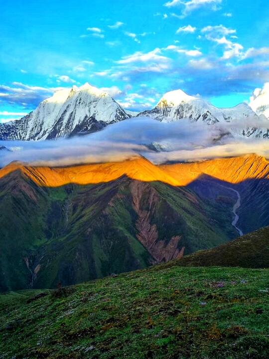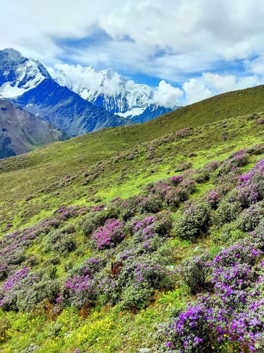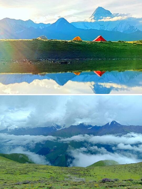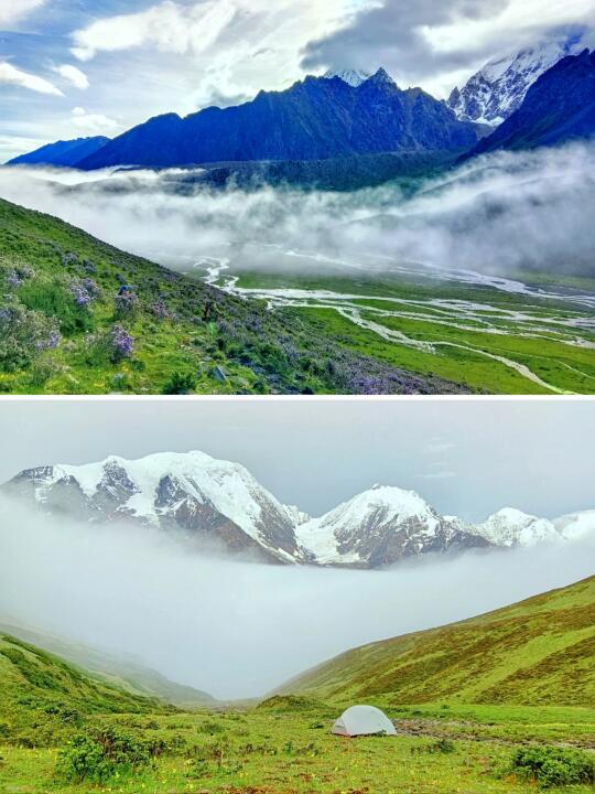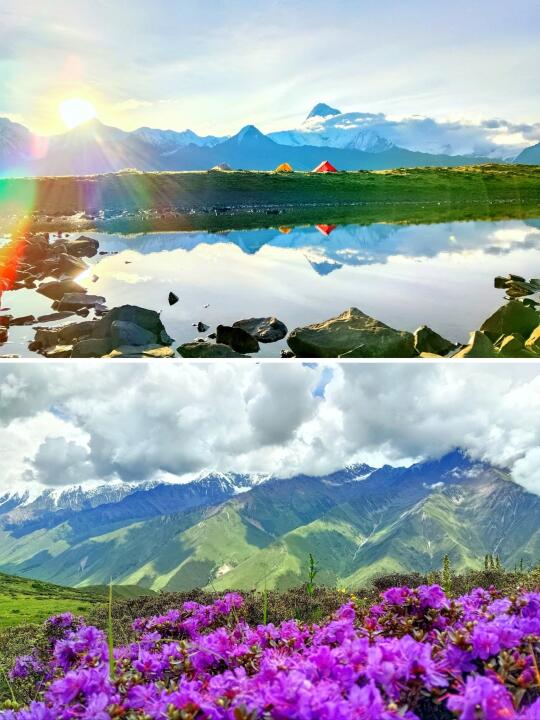🌈被誉为“蜀山之王”的贡嘎雪山为康巴魂魄,显得圣洁威严而气势磅礴!海拔7556米,为四川最高峰。这里山峰挺立,巍峨绵延,是您释放灵魂的好去处!这里徒步线路众多,尤其是山脊线,贡嘎雪山近在眼前,仿佛触手可及,能真正领略它的庄严神圣与坚毅宏伟,还有日照金山、星空、云海等等,无不是你出行的理由。线路长约88公里,按常走的C线翻越日乌且垭口后再向南沿山脊行至里索海子,下山方式两边都可走,右边至上木居村,左边增藤沟走的人少,可继续往前到九子海再出草科