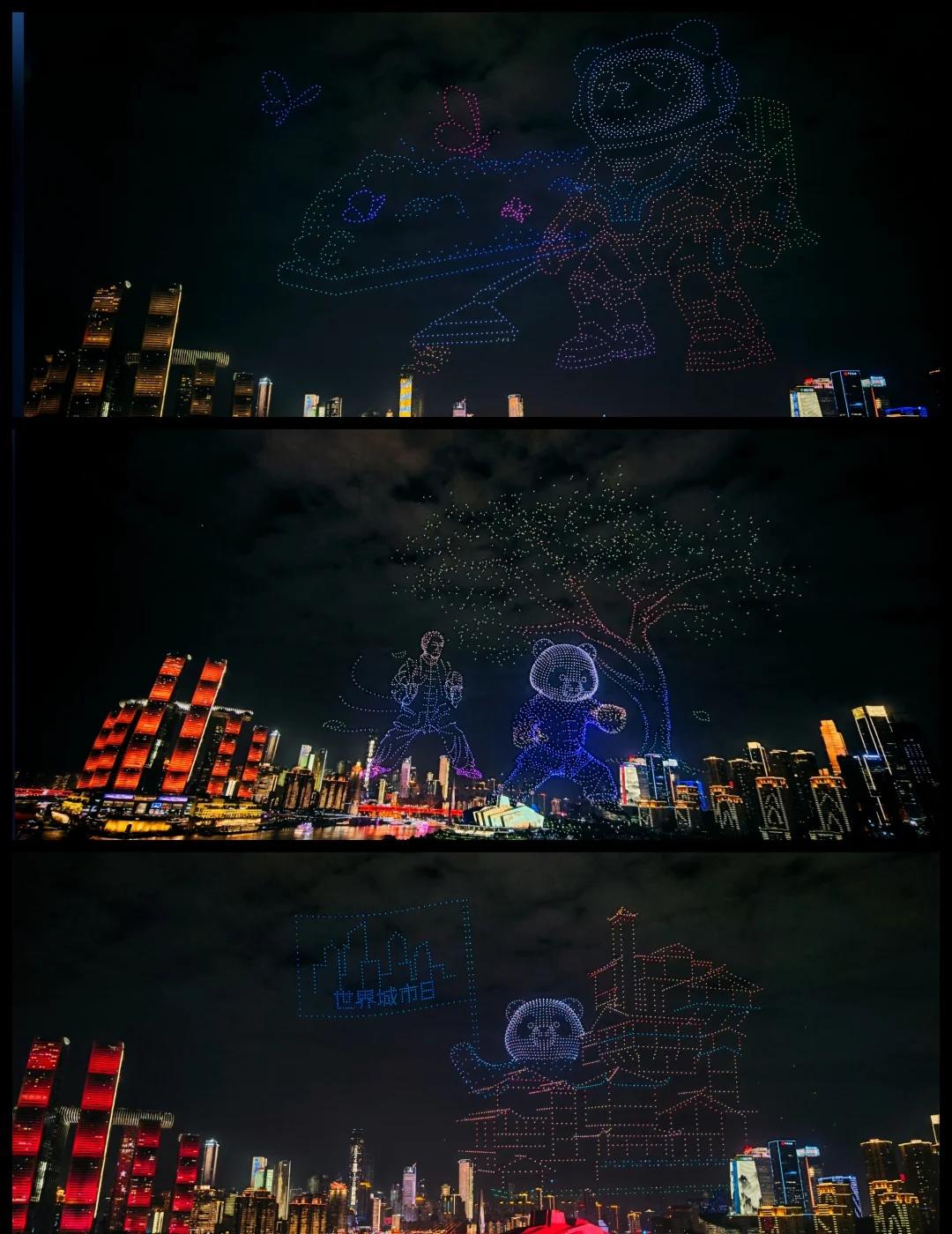 我宣布今晚的无人机灯光秀是最好看的一期! 10月27日世界城市日,大熊猫与城市与无人机科技结合!重庆人的浪漫 灯光秀 无人机 烟花秀 无人机灯光秀 重庆无人机表演 重庆无人机灯光秀荣耀Magic8 荣耀2亿超夜神