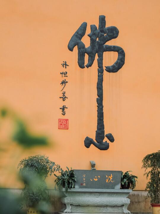 黄墙上“佛心”二字极具禅意。