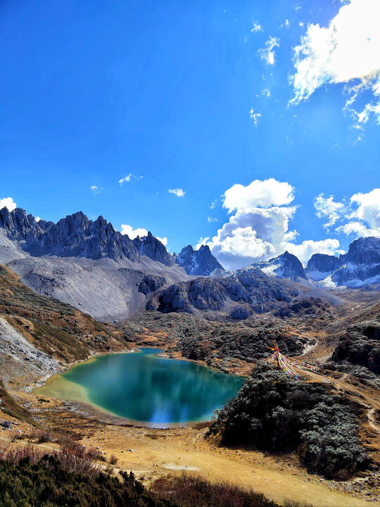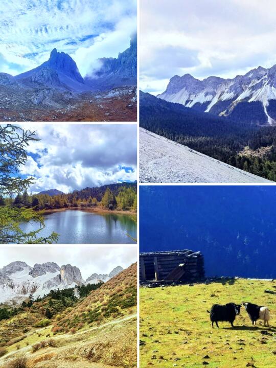 D3徒步10公里:营地→天宝垭口(4540m)→流沙坡横切→仙女垭口(4340m,垭口前可下撤至小中甸)→仙女湖→废弃牧场→4260小垭口→伴拉牧场营地(25km,4320m)