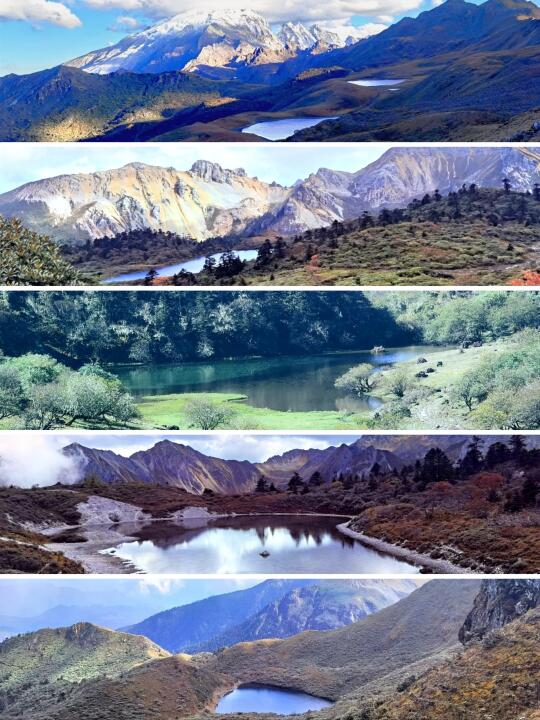 🌈哈天线是很多人都想走的山脊线路,有“天空之路”美称,美景无法用语言形容,沿途海子如宝石般密布在群山之中,在杜鹃花季与深秋彩林季走线为佳。线路一般反穿,从洗脸盆垭口上山经天宝雪山向南到哈巴雪山再向下到海巴洛村走G214回家(也可往北到哈巴村走虎香公路),全程约 90 公里,海拔在3800 - 4500 米,至少翻越 12 个 4000 米以上垭口,一般为6-7天,沿途牧场营地较多