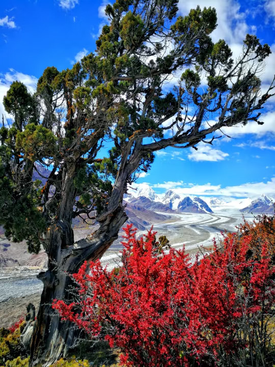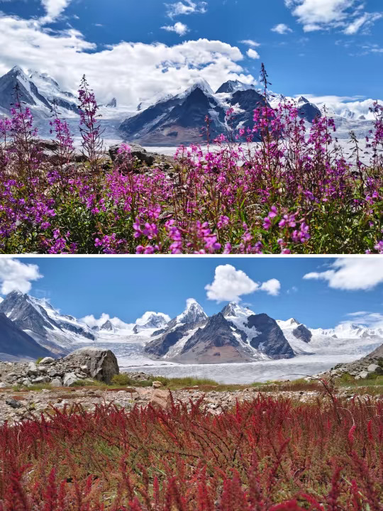 ✳️D2今天先坐车25公里到达巴村后再换车进山到琼哥特牧场扎营欣赏冰川:然乌镇→达巴村(25km,换车)→罗布通(3940m)→上平台经幡(4380m)→初拉牧场(4430m)→琼哥特牧场营地(4460m,15km)