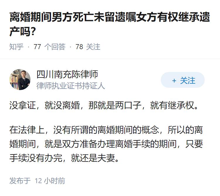 离婚期间男方死亡未留遗嘱女方有权继承遗产吗?