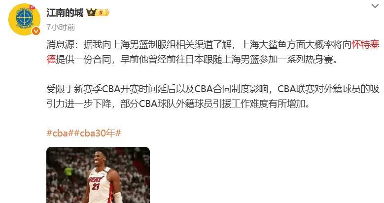 恕我直言,签下辽篮旧将,上海男篮可算是下血本,也要争冠军,为张镇麟配上后场老搭档,想夺冠必须要有经验丰富的老将!据国内媒体人透露:上海队大概率将向怀特塞德提供一份合同;上海这有点像坐过山车,确定的三外援是:洛夫顿、古德温和弗格,仍缺一号位!下赛季,广东想夺冠,很拥挤,竞争者中又增加一个上海,压力倍增