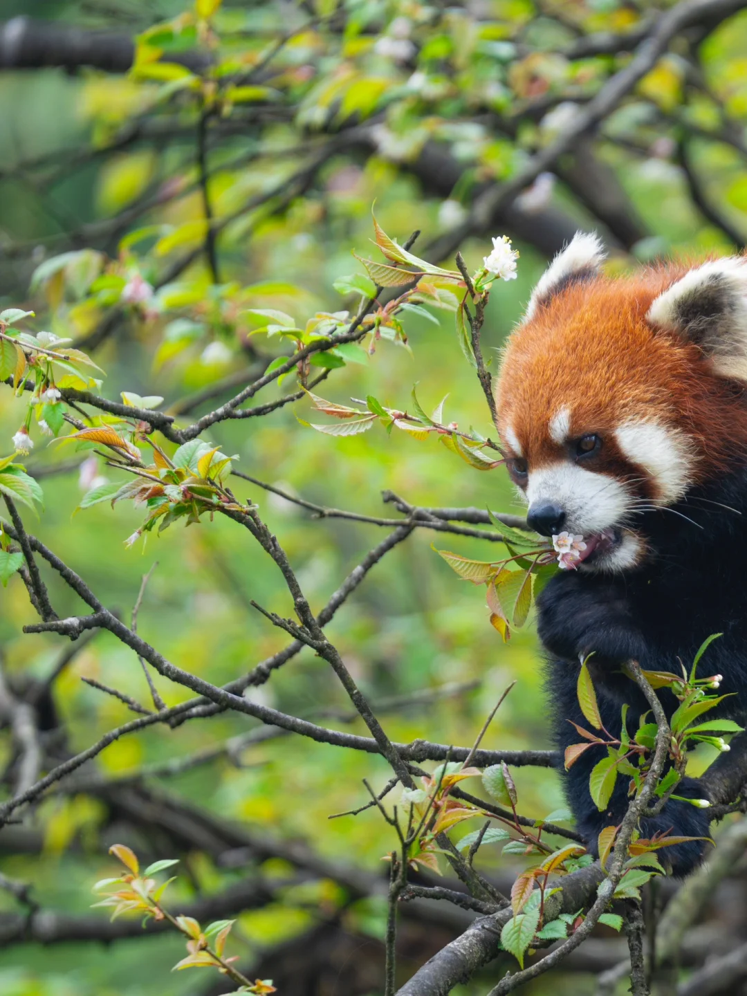 我们要抵制动物表演,但是无法拒绝动物非要表演啊[捂脸R]小熊猫睡醒后就开始了长达半小时的吃播,我把它吃花和叶子的照片分享给大家,一起看看这可爱的小动物。