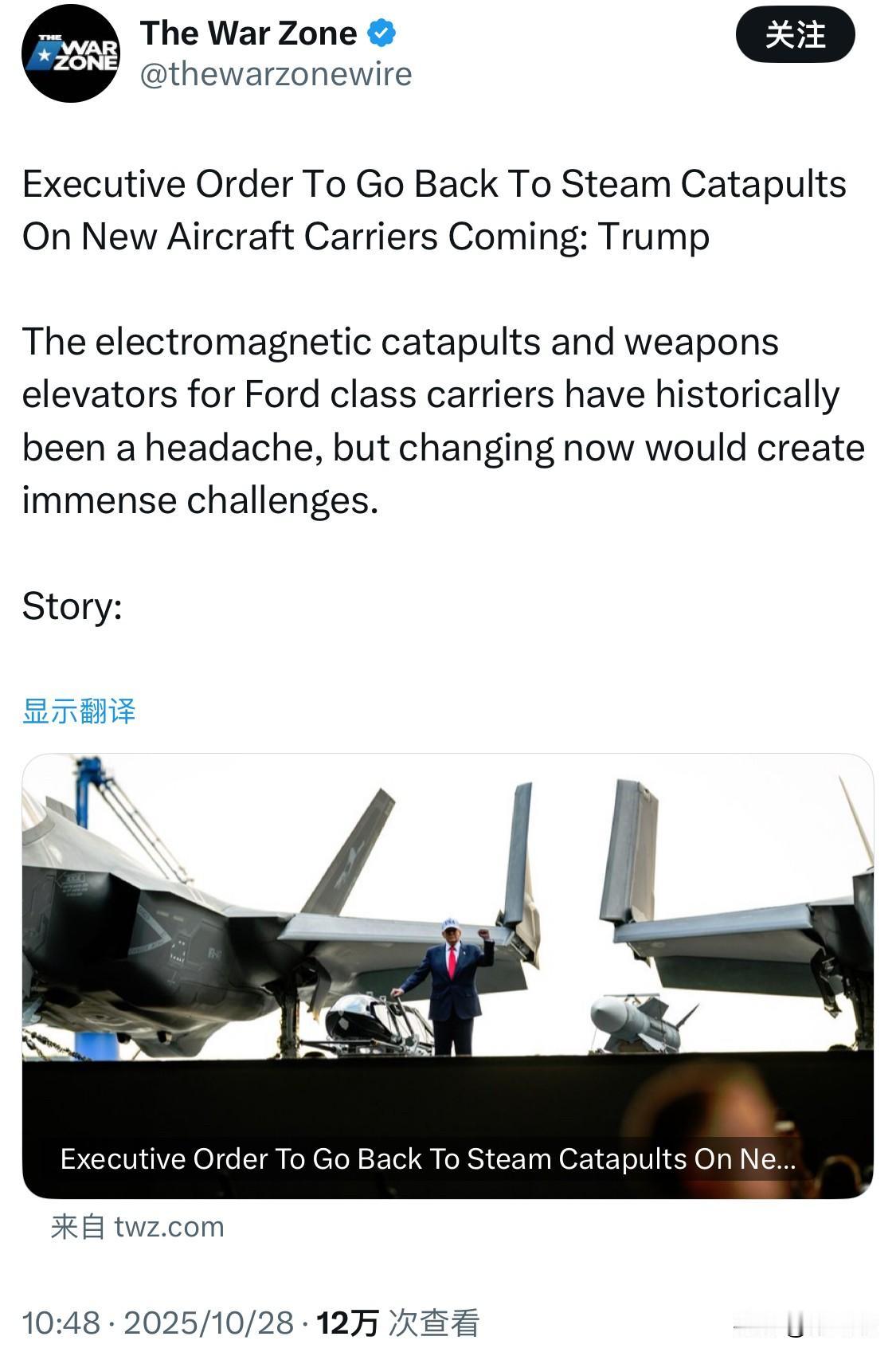 2025年10月28日,特朗普宣布将签署行政令,将叫停所有电磁弹射项目,把电磁弹射改回蒸汽弹射。