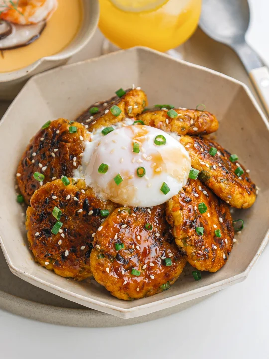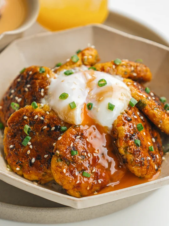 ❽ 藜麦饭打底,放豆腐排和温泉蛋