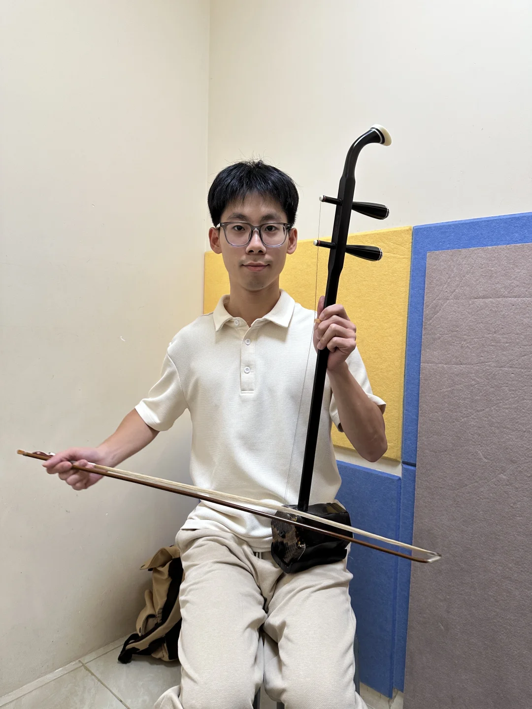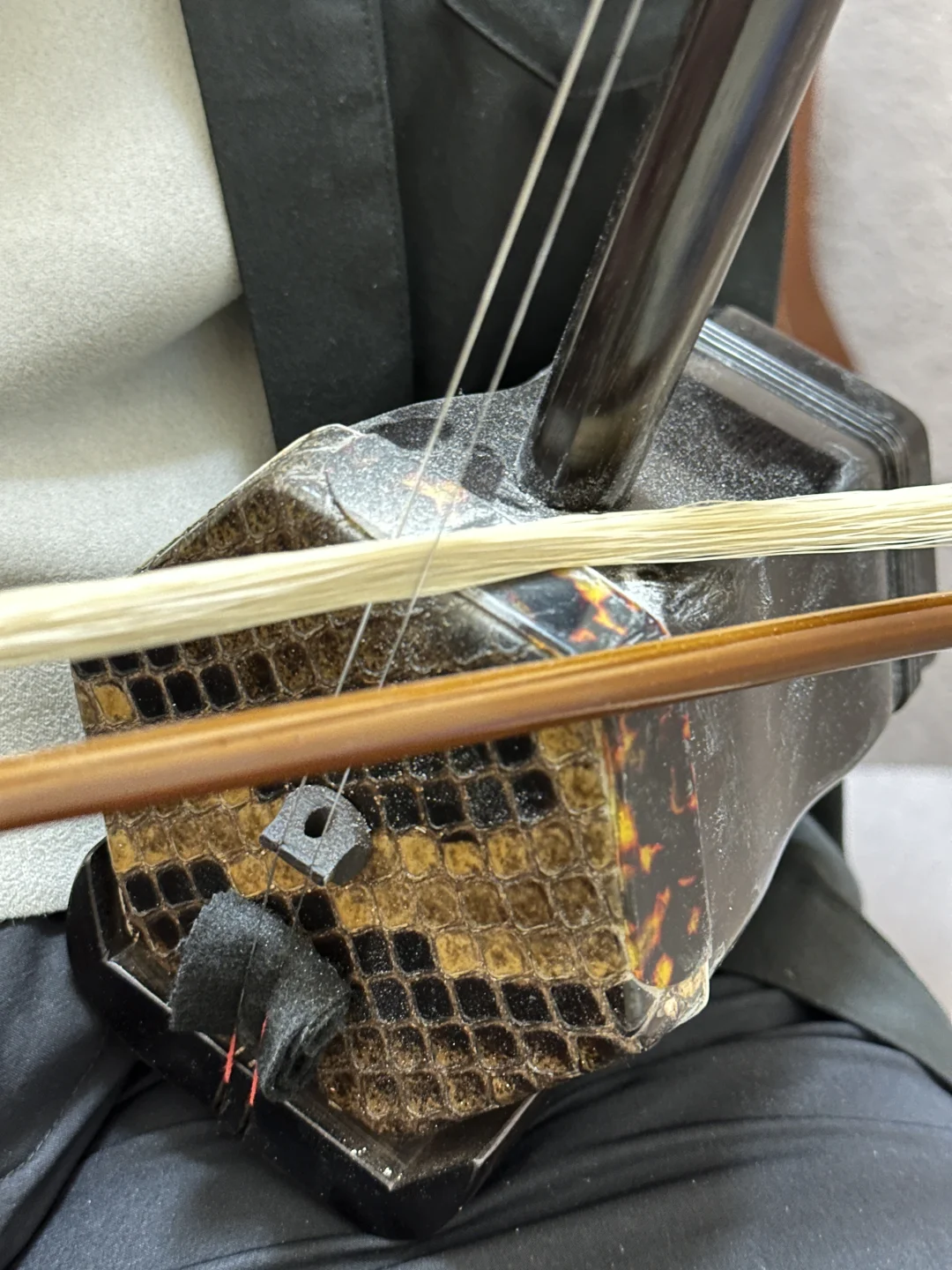 接下来40分钟的学习才是惊喜!一开始我手忙脚乱,连“内弦拉duo、外弦拉suo”都分不清,弓子总跑偏。老师超有耐心,握着我的手一点点调整姿势,还笑说“刚开始都这样,像在跟琴‘吵架’”😂 慢慢找到感觉后,居然能断断续续拉出一小段旋律,虽然生涩,但听到二胡特有的婉转音色时,鸡皮疙瘩都起来了!