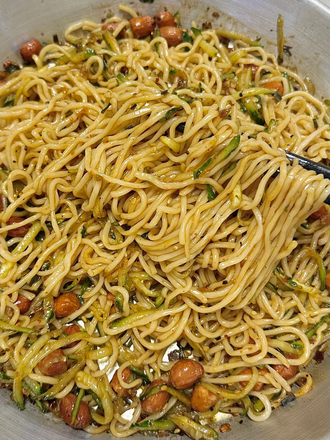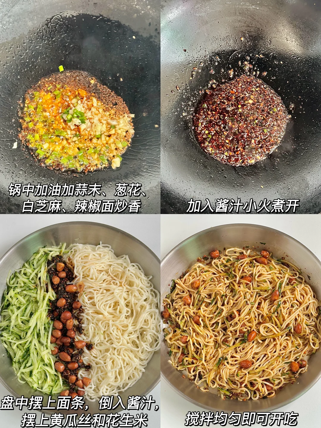 天气热了就想吃上一碗清爽解腻的糖醋凉面!!今天做了我老公每天上班要去吃的重庆凉面🍜~他说完美复刻让我每天给他做😂😂😂做法简单又好吃分享给大家~ 🌟准备食材🌟 黄瓜、鸡蛋面 🌟做法🌟 1️⃣调酱汁:两勺生抽、一勺陈醋、一勺蚝油、一小勺白糖、一小勺味精/鸡精,适量香油、少量老抽搅拌均匀备用 2️⃣面条煮熟捞出,过凉水备用,锅中加油加蒜末、葱花、白芝麻、辣椒面炒香,加入酱汁小火煮开 3️⃣盘中摆上面条,倒入酱汁,摆上黄瓜丝和花生米,搅拌均匀即可开吃