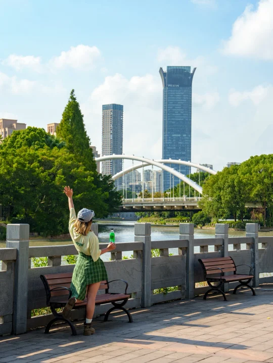 4️⃣p5p6:砻糠桥:红色的钢架,透过钢架做框景,拍到建筑。p7在桥旁边的长椅