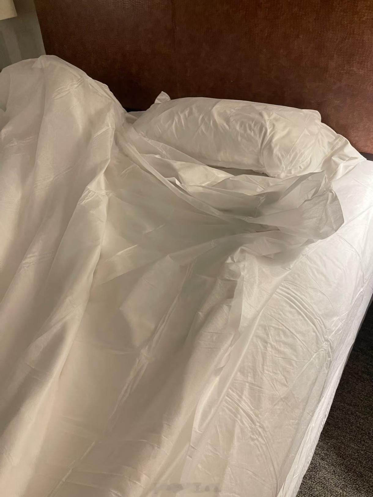 男子住酒店自带床单被罩全隔离其实有很多劣质一次性床单比酒店的被单更脏……很多时候也只能图个心理安慰