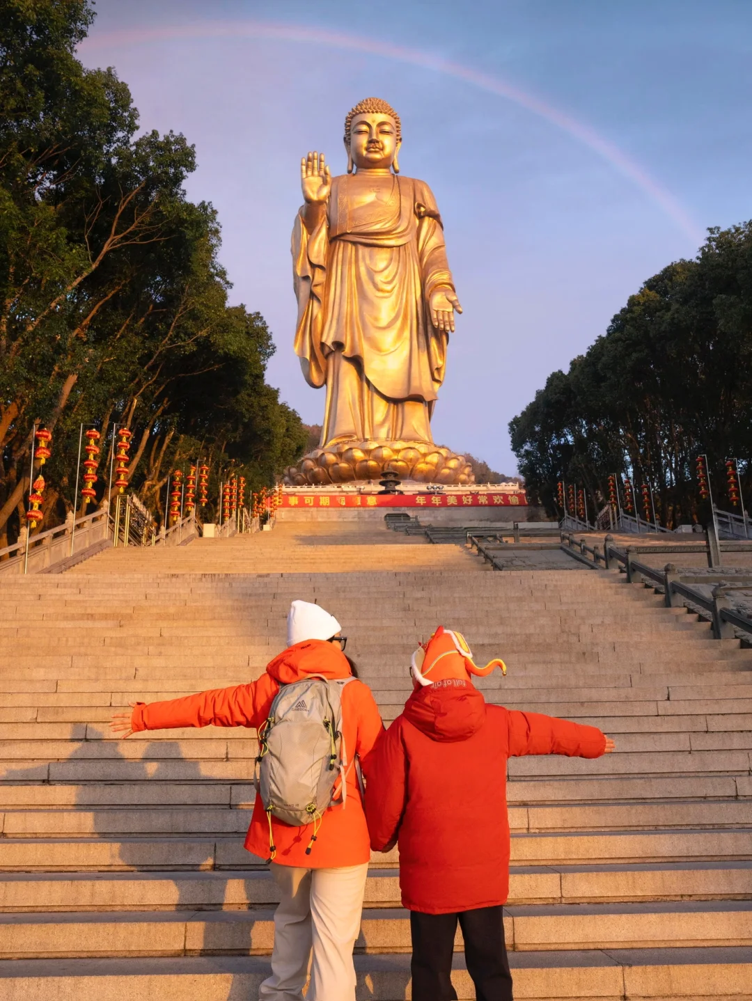在灵山大佛迎接到2025新年的DI一缕阳光,祈福新年好运连连。享一份灵山素面,再去市集逛逛,有舞狮、杂技、特色小吃、集福游戏。