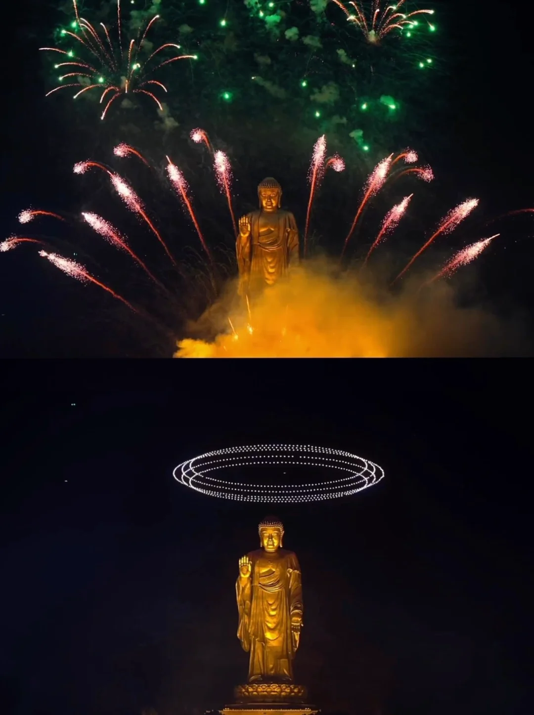 2025的跨年,我们同时拥有漫天烟花、灵山大佛、无人机组成的祝福,0点时整个天空如星河璀璨,