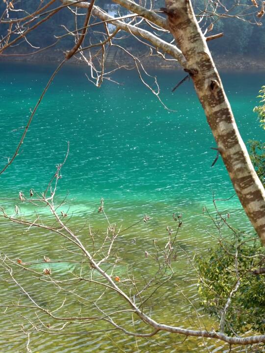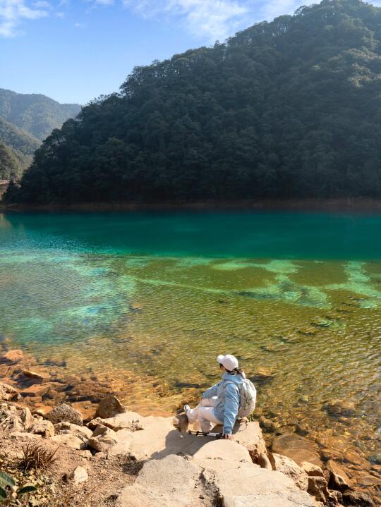 大洋坞水库,水质清澈见底,瓦蓝的色泽,仿佛置身于九寨沟。