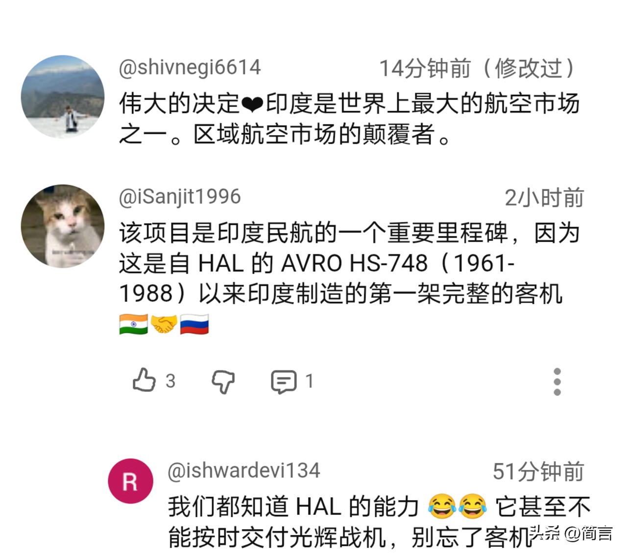 时隔40年,重返客机市场!印网友:未来十年属于印度。 据多家印媒10月28日报道,印度与俄罗斯签署了协议,双方共同合作生产SSJ—100客机。印媒表示,这是40年来印度的首个客机项目,是继1988年AvRO Hs748停产后,再次重启生产客机生产。 SSJ—100是俄罗斯研发的最新一代短程支线客机。该机于2008年5月完成首飞,2011年投入商业运行,其最大航程4509公里,标准载客能力为103人。印媒认为,未来它将与A320、波音737及C919共同争夺支线客机市场。 拥有14亿人口的庞大市场,随着经济的快速发展,印度对客机的需求量将会大幅度增加。根据相关机构预测,未来20年其市场缺口达到了500架。很显然,印度不想把市场拱手让人,想通过双方的合作发展本国航空的产业,提升大飞机制造和研发的能力,最终摆脱对国外的依赖。 闻讯后的印度网友自然是深受鼓舞,相信自家一定能够成功,更有甚者表示,未来十年看印度的…