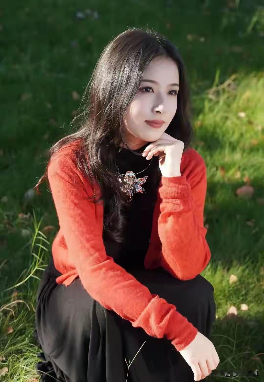 优雅黑丝绒搭配花色丝巾,甜美笑容,气质满分!🌸💄