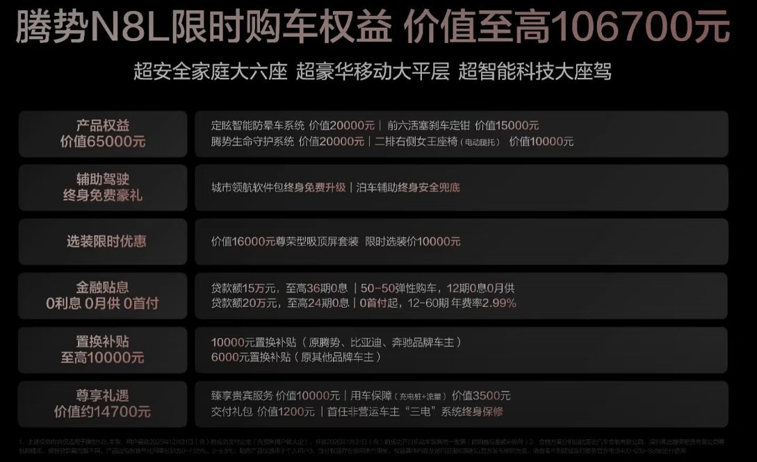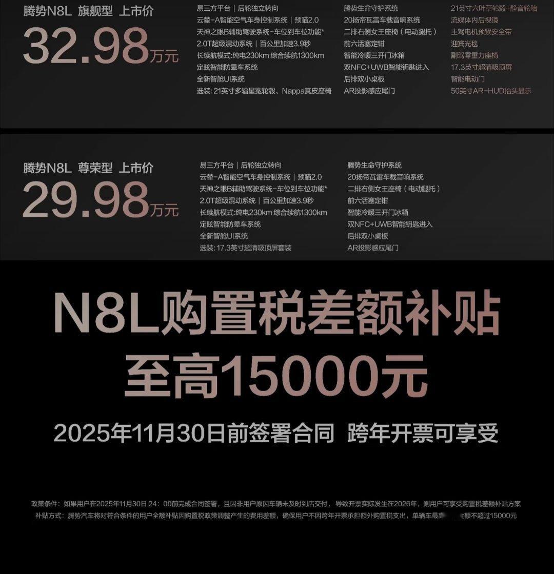 腾势N8L,非常理工男的一台车,我在盐城试车场亲眼见过这车的鱼钩测试,现场看很震撼,但在传播语境里并不划算,不仅得解释这是什么测试,还得解释这测试对客户的意义是什么?易三方,后轮转向,带预瞄云撵A,全铝前双叉臂后五连杆,这些都是好东西,但都不如多点纯电续航,多配两块大屏更吸引人。