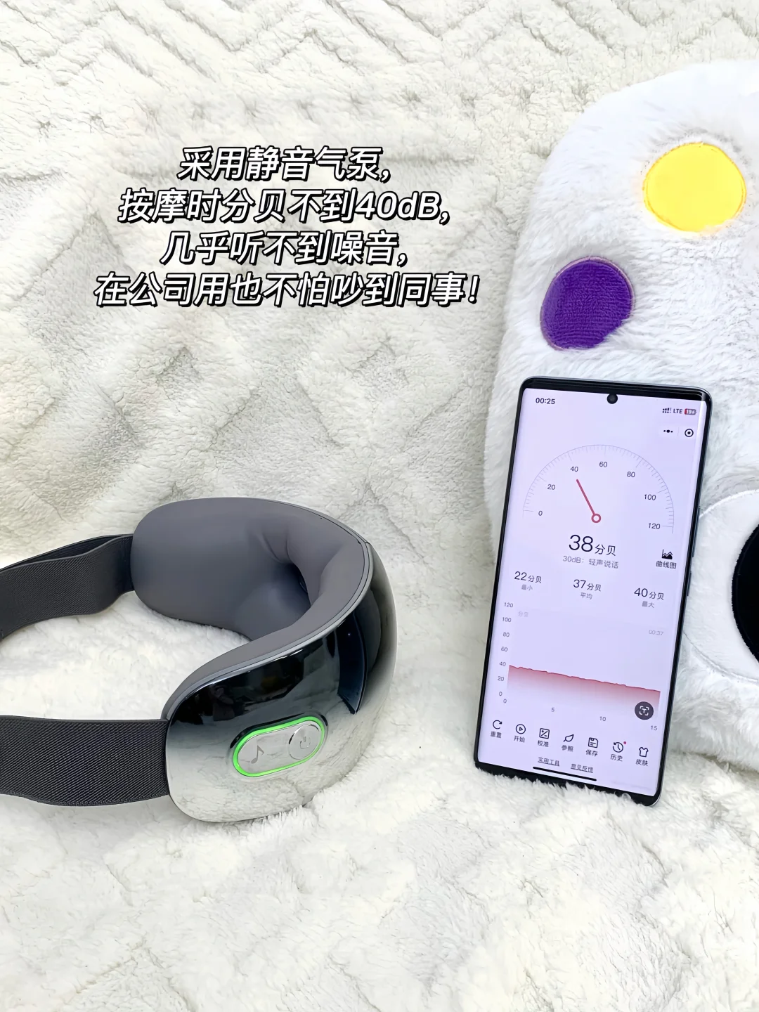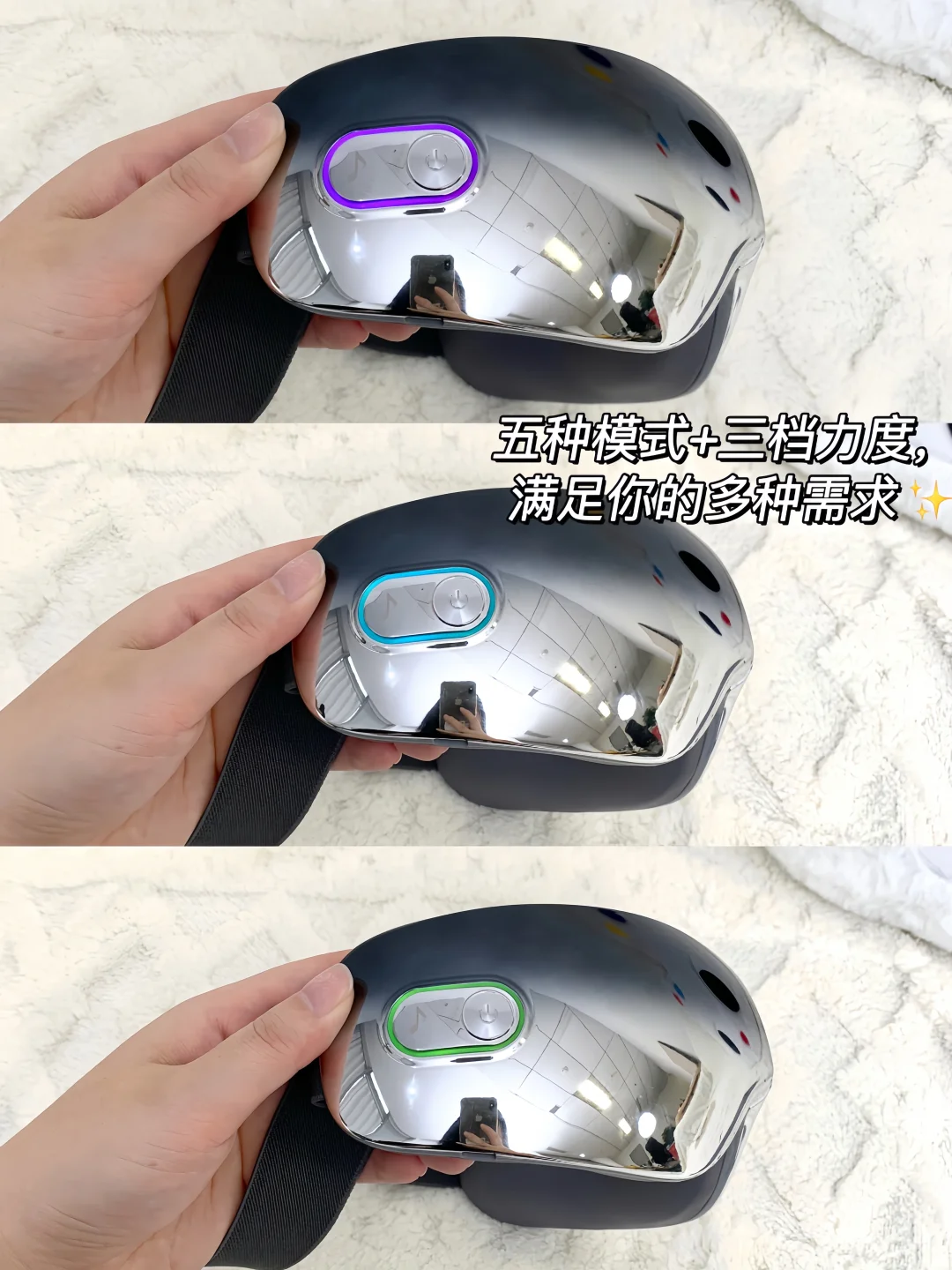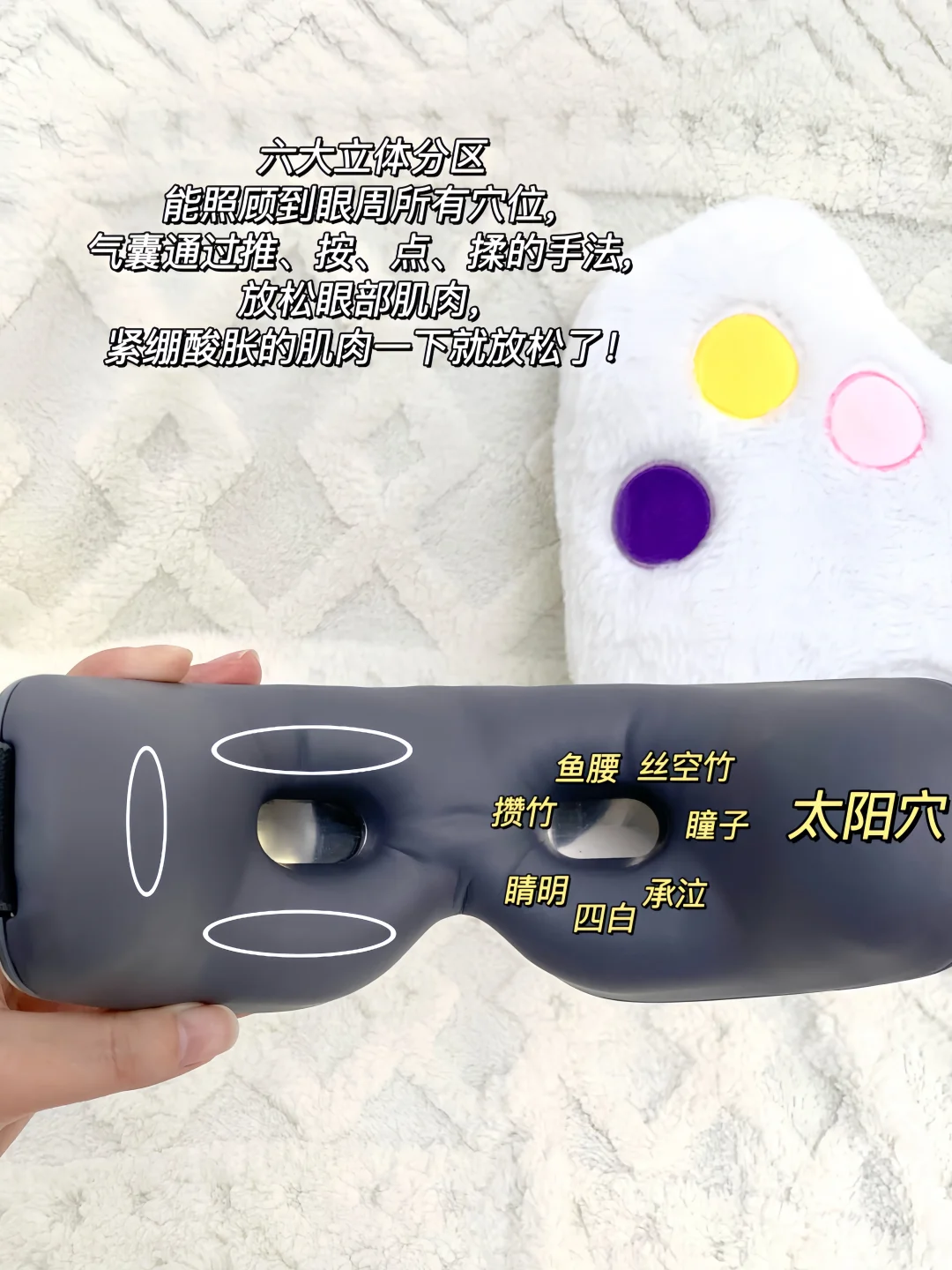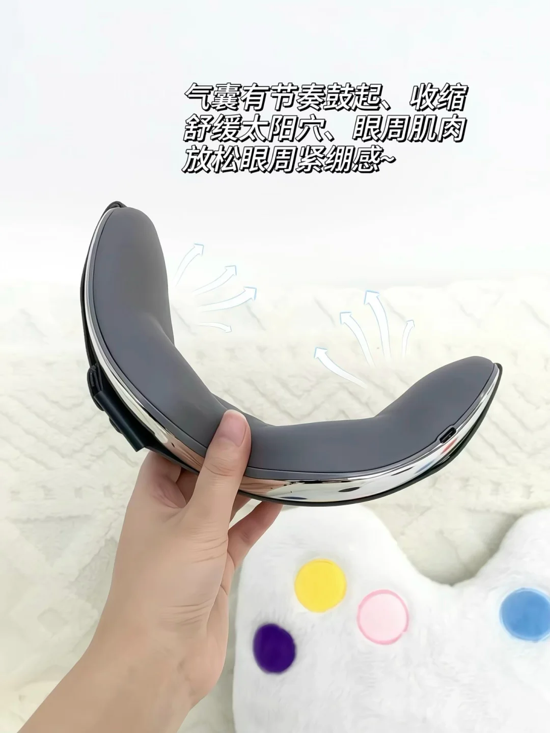 气囊触感好,像人手在轻轻揉太阳穴、眼周和眼尾