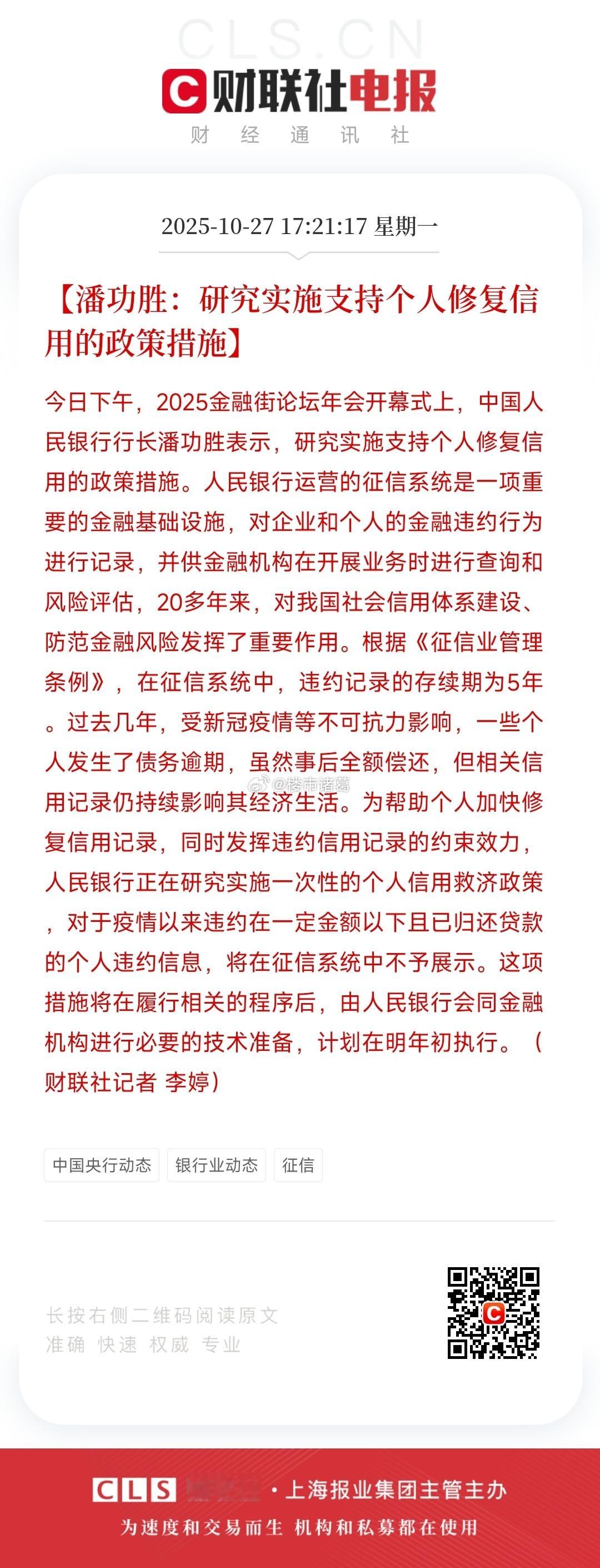 央行释放重磅信号:将实施一次性个人信用救济政策,计划明年初落地,曙光就在眼前。。