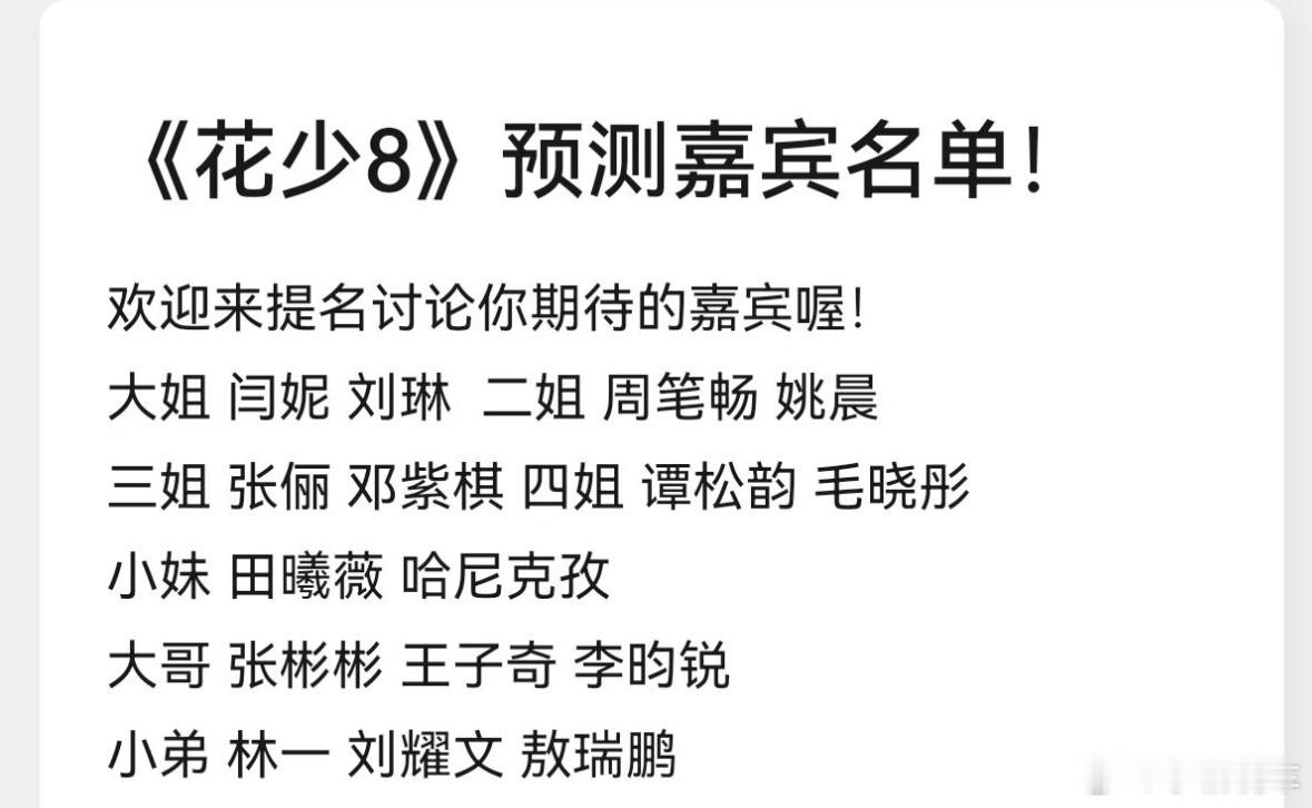 花少8要去南极姐姐弟弟去南极,那会不会很苦,产生很多矛盾[无聊]《花少8》预测名单,你们期待哪个嘉宾?