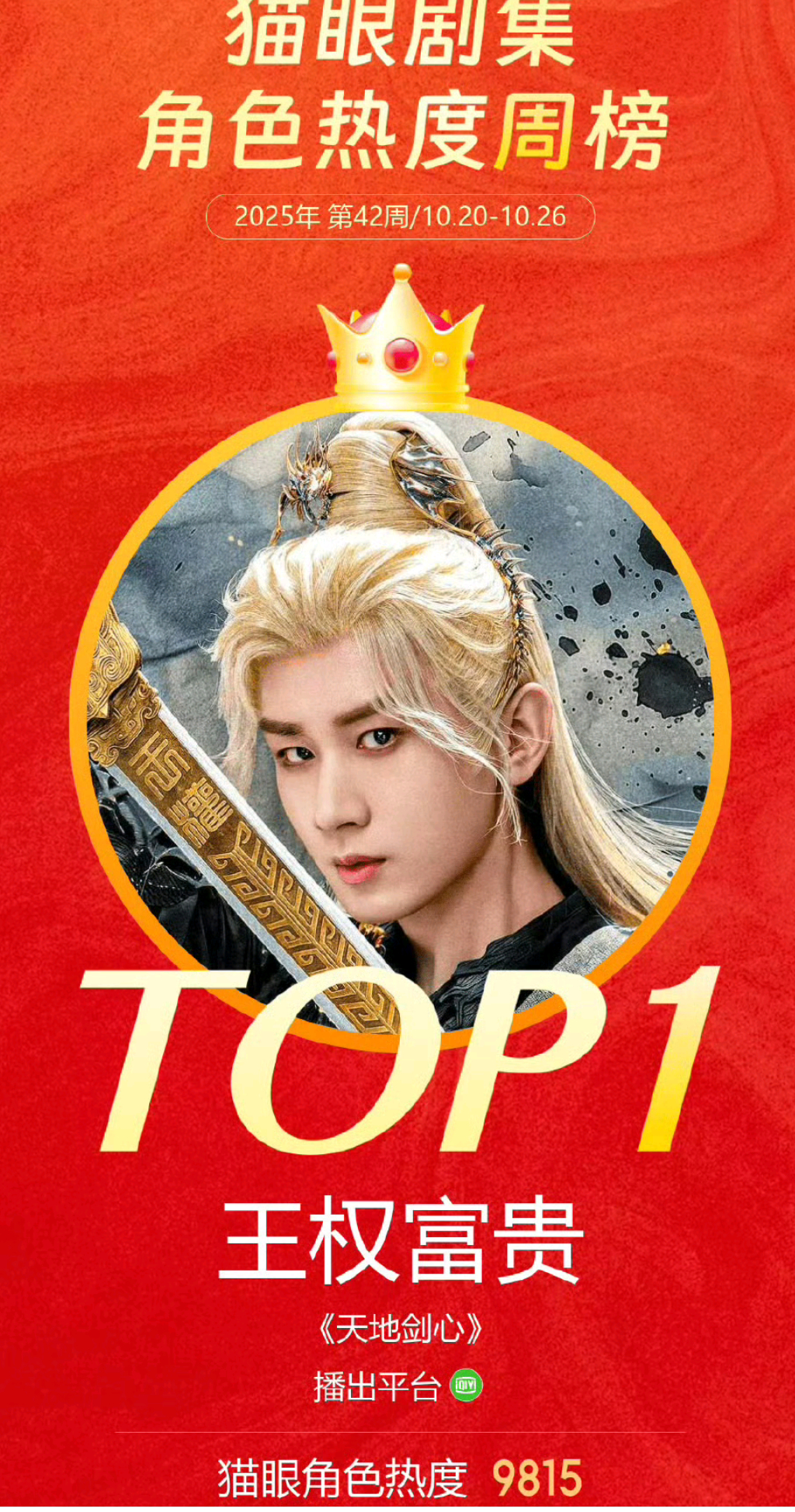 2025酷云角色热度周榜冠军:成毅天地剑心王权富贵!成毅扛剧能力太顶了!