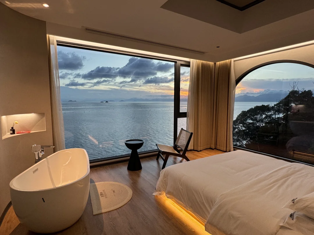 去看一场日出日落 去黑沙滩拍一组照片 去住日落海景民宿 去感受海岛的漫生活 ——— 🏝️半度闲海滨度假村 🚢福建霞浦海岛乡里澳 ——— 码头每天中午十二点多的船 岛上随处可见悠闲的牛羊 住宿岛上半度闲海滨度假村 面朝大海是看日落的民宿 适合悠闲的一两日游玩 可以在草坪看日落 躺在床上看日落 惬意的海岛度假 ·
