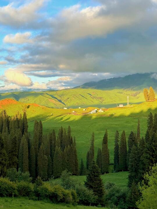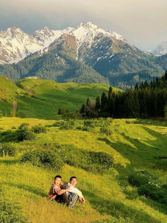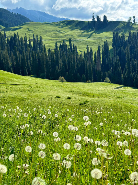 雪山,森林,草坪 每一处都像是电影里的画面 像极了海蒂和爷爷生活的场景 满山遍野的野花盛开 每一个画面都是那么的治愈 🏔️新疆恰西 ·