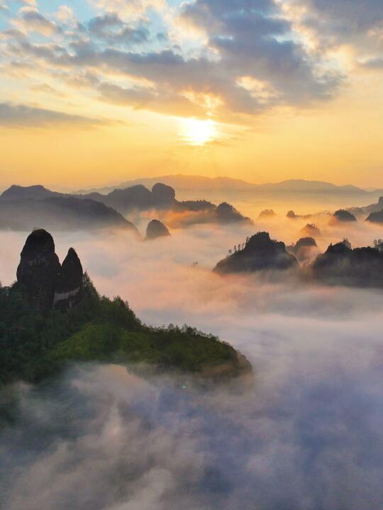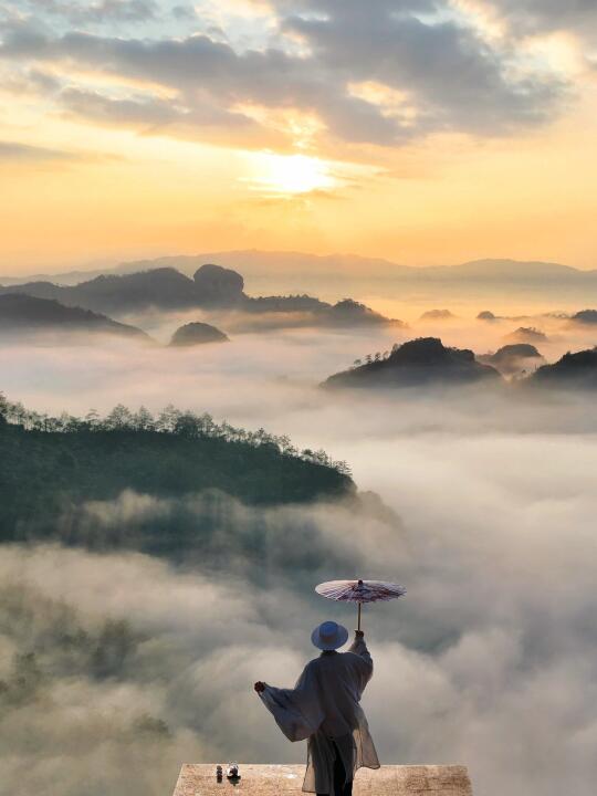 追一场云海日出云海 一定看准天气跟日出时间 湿度够了云雾云海真的美 还有青苔石板路可以拍照 · 我住在景区旁的一曲相思矮胡酒店 酒店背靠着大王峰还有私汤可以泡 格外的惬意还有茶室和院子可以拍照 ·