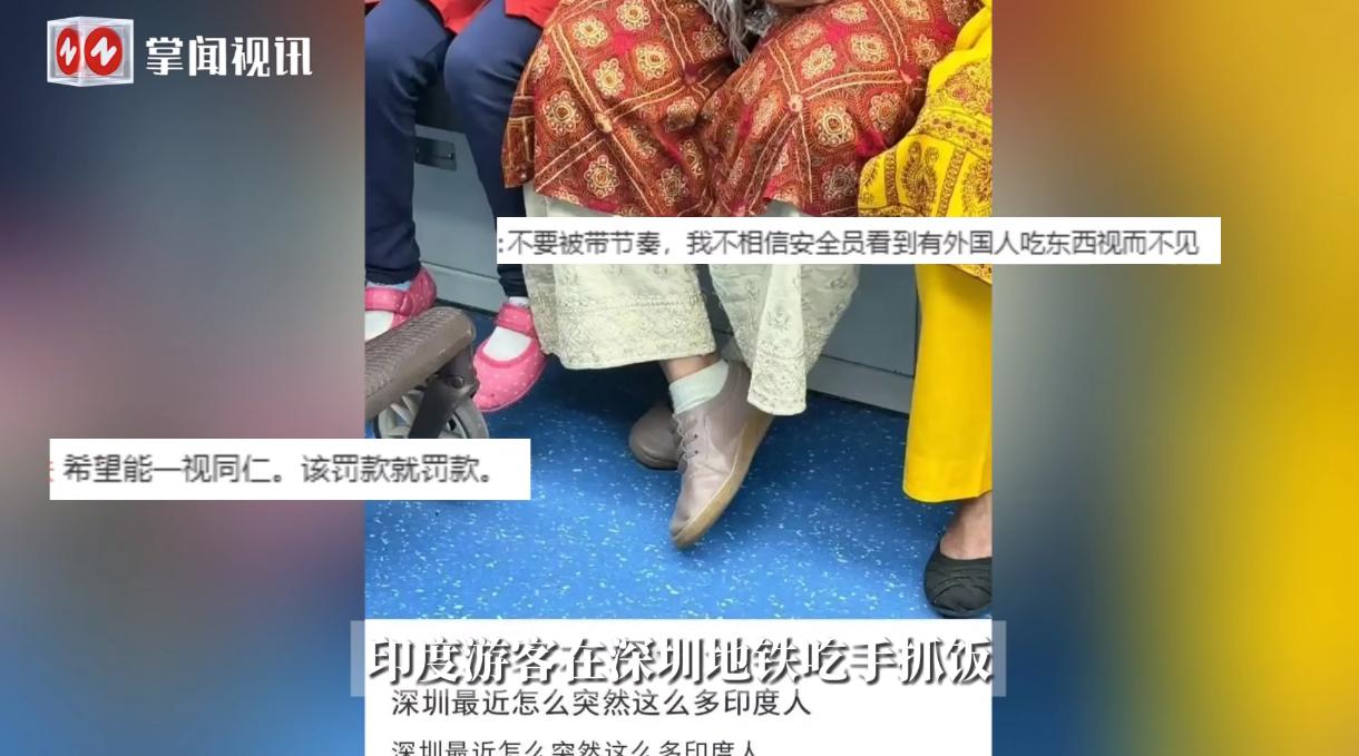 10月27日广东深圳,两位印度人在地铁上趁着巡查员不在时,竟掏出了两份手抓饭,然后在地铁上大快朵颐起来,旁边一位乘客看不下去,将这一幕拍了下来,网友们顿时吵翻! 深圳地铁 3 号线的一节车厢里,俩印度乘客的举动让周围人议论纷纷。当天下午 5 点多,正是下班高峰期,车厢里人不算挤但也没空座。 这时候,这两位印度乘客从随身的包里掏出了两个餐盒,里头装的是黄灿灿的手抓饭,也没顾周围人的眼光,直接就用手抓着吃了起来。 李女士(化名)回忆,当时地铁里的巡查员刚查完这节车厢没一会儿,可能是去别的车厢了,这俩乘客就 “抓住机会” 开始吃。“他们吃得挺投入的,一会儿抓点饭,一会儿捏块咖喱味的配菜,那饭粒有时候还掉在地上一点。 旁边有个年轻姑娘皱着眉头往旁边挪了挪,还有个大爷忍不住咳嗽了几声。” 李女士觉得挺不合适,就悄悄拿出手机把这一幕拍了下来,想着只是自己留个底,没打算发出去。 可让她没想到的是,这段视频不知怎么就被传到了网上。一下子,网友们就跟炸开了锅似的。 有人说:“地铁是公共场合,吃东西本来就违反规定,这手抓饭还弄得挺‘原生态’,也太不考虑别人感受了。” 还有人觉得:“不管是哪国人,在地铁里吃东西就是不对,深圳地铁得管管。” 但也有少数人觉得:“可能他们不太清楚咱们的规定,是不是可以善意提醒一下,没必要这么上纲上线。” 视频火了之后,深圳地铁方面很快就有了回应。他们说当天巡查员巡查的时候没发现异常,可能是巡查其他车厢时这两位乘客才开始吃的。而且强调对所有乘客都一视同仁,不会区别对待,后续会加强管理和培训。 这事传到网上后,评论区更是热闹。 有网友调侃:“这是把地铁当成印度的露天餐厅了?” 还有网友认真分析:“公共场合的规则大家都得遵守,不管你来自哪里,入乡随俗是基本的礼貌。” 也有网友觉得深圳地铁的回应挺中肯,“一视同仁是对的,不能因为是外国人就搞特殊,也不能因为是外国人就故意针对,关键是把规则落实好,以后加强巡查才是真的。” 其实,了解一下就能知道,深圳地铁的《深圳市城市轨道交通运营管理办法》第三十三条早就明确规定了,禁止在车站付费区及列车内饮食,婴儿饮食除外。所以不管是谁,不管吃的是什么,在地铁里吃东西就是不符合规定的。 这事儿虽然不算什么惊天动地的大事,但也让大家议论了好一阵。有人说,这提醒咱们不管是本地人还是外地人,不管是中国人还是外国人,到了一个地方就得遵守当地的规矩,公共场合的秩序得靠大家一起维护。 也有人觉得,遇到这种事,咱们可以多一些善意的提醒,少一些恶意的揣测,这样大家相处起来才更和谐。 你别说,这事儿虽然吵得挺热闹,但也让大家在公共礼仪和规则意识上有了更多思考。毕竟,在一个越来越开放的城市里,咱们遇到的人和事会越来越多,怎么在尊重彼此的同时维护好公共秩序,还真值得好好琢磨琢磨。 对于这件事情,大家怎么看?