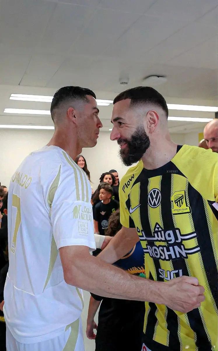 C罗晒照鼓舞球队C罗本泽马赛后拥抱'以前在香港看比赛就发现本泽马率领的这支吉达联合绝不是弱队,只是友谊赛他们没上力……这场沙特国王杯自然不同,这次不能再怪本泽马了吧,他直接帮助球队晋级了!赛后与C罗的互动依然让人怀念曾在皇马的时光,只是已惘然。