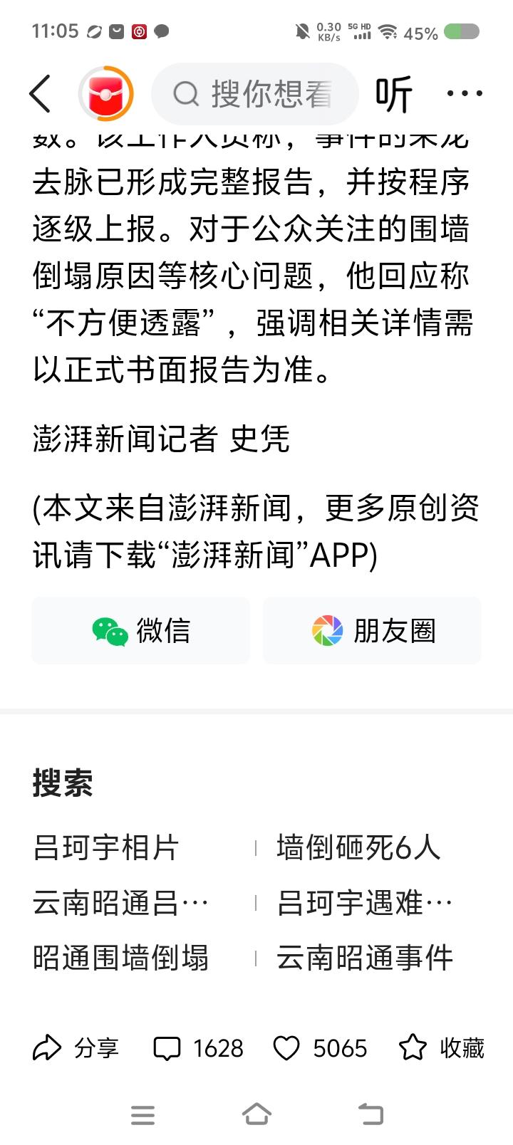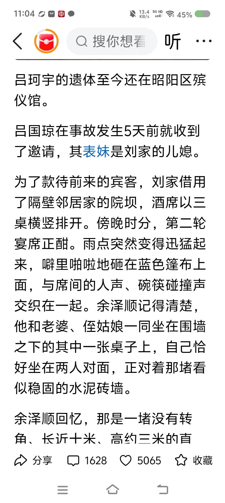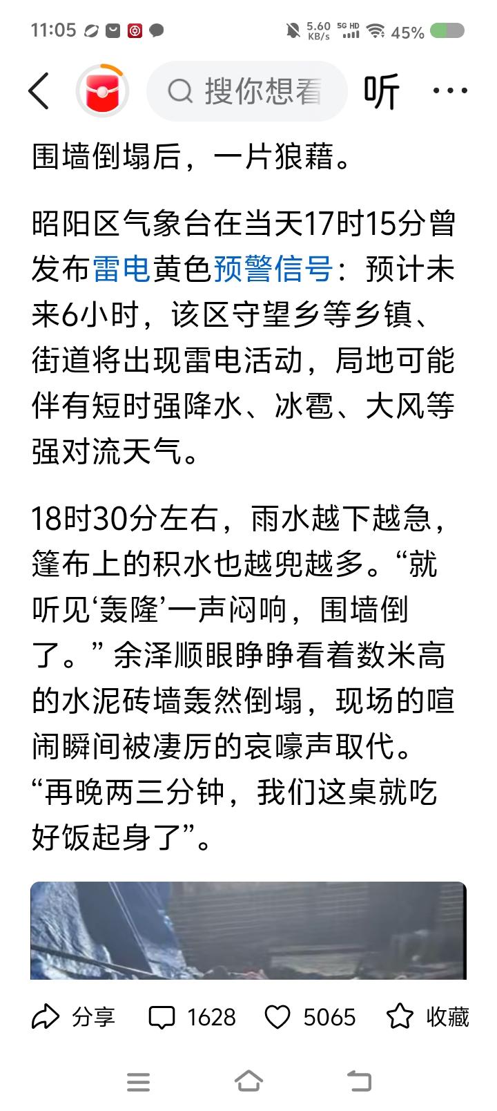 丧事遇上“丧事”?—— 据报道,云南某地一村民家办丧事,围墙倒塌,6人遇难。有关部门筹款,加上事主赔偿,共14.6万元,给到每一家,前提是遗体尽快火化,其中一名死者家属不同意,要求查明具体原因,予以公布。 点评: 这种事故听着罕见又常见。农村设施和人的管理,加上自然因素,会导致的。 曾去过有丧事的人家,有的屋旧巷窄院子小,不具备宴席请客的安全条件。 希望农村干部加强农村旧屋危墙的调查。