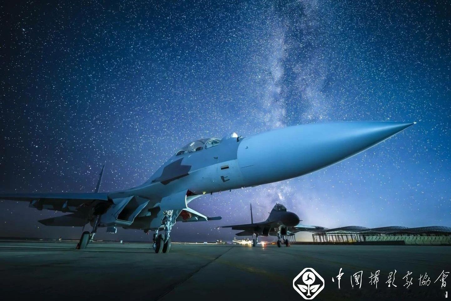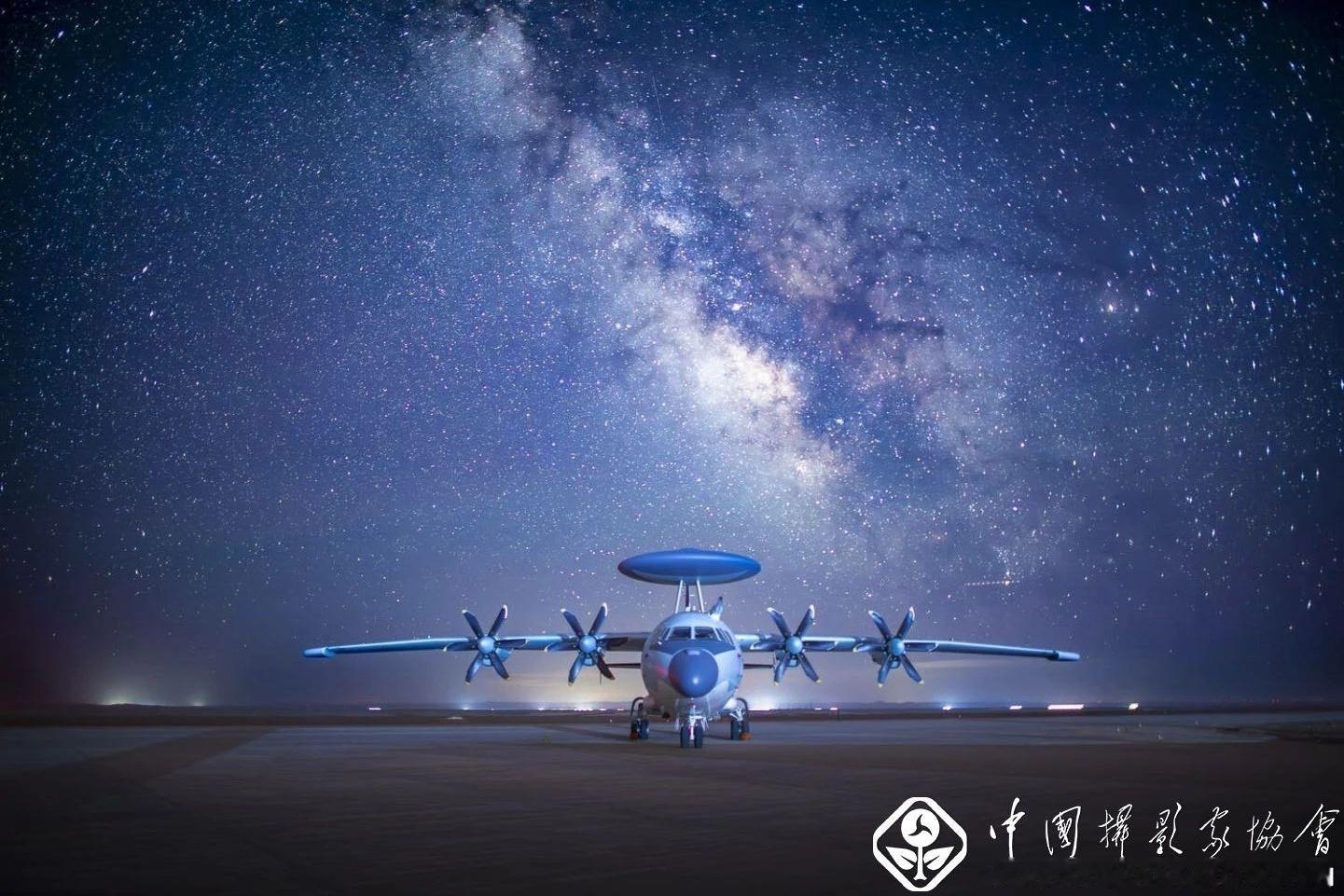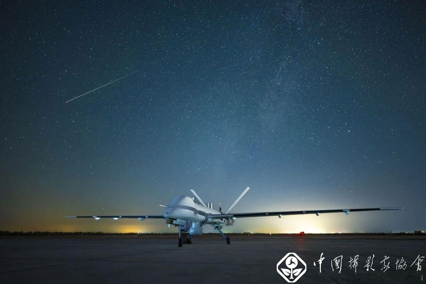 国产战机(歼-20、歼-16、KVD002无人机等)与星空,空军摄影师杨军作品。