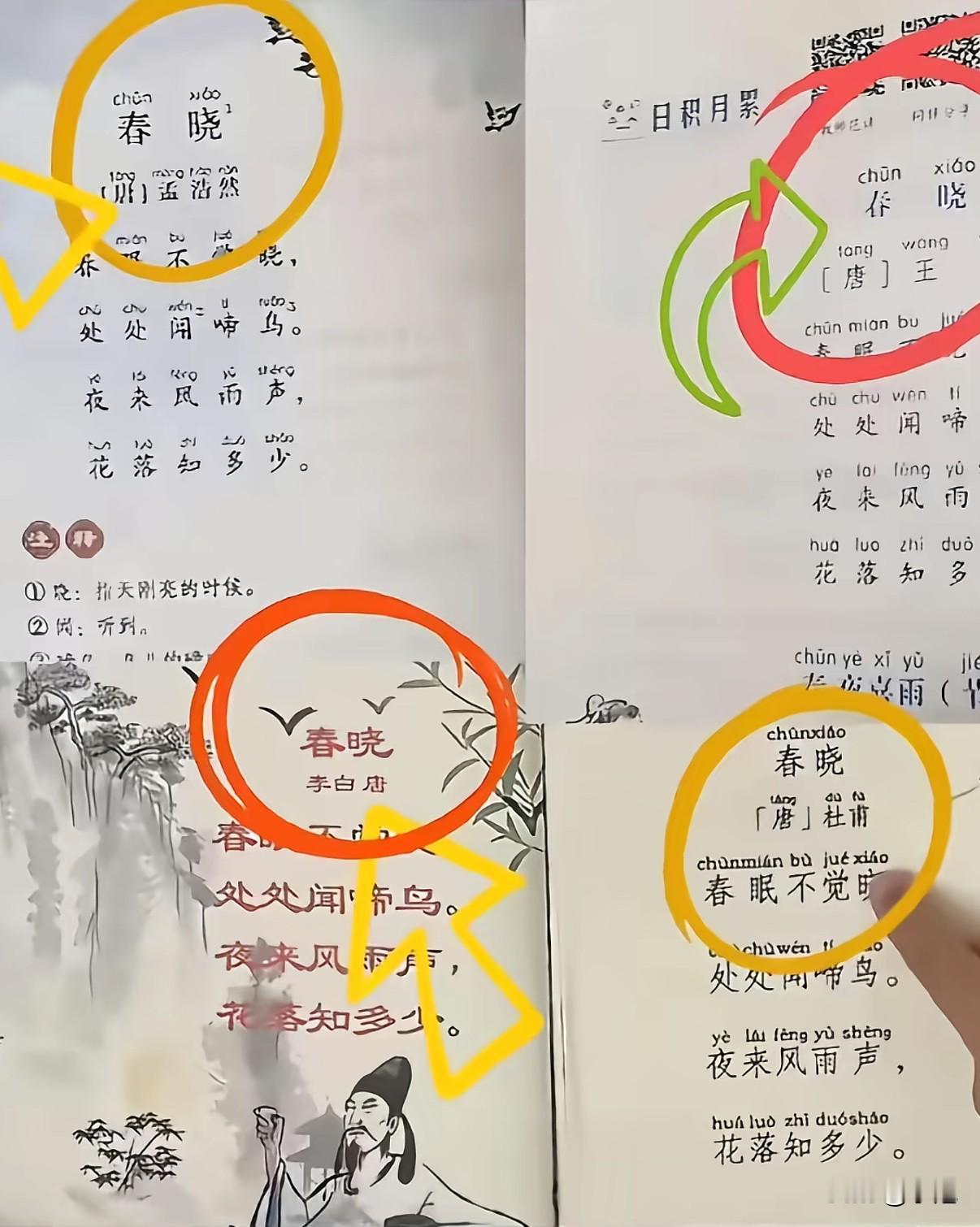 惊呆了! “春晓”竟然有四个作者? 孟浩然,王维,李白,杜甫。 盗版出版社不知害了多少人。