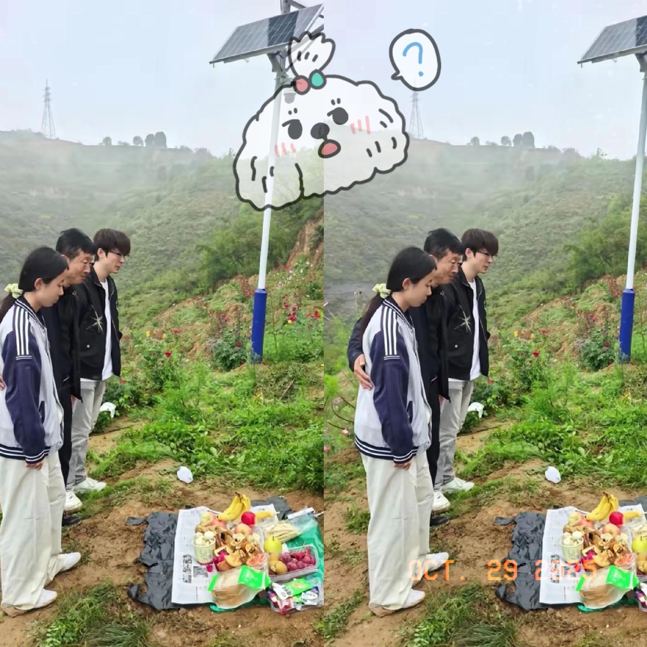 一名男子带着自己的一双儿女,站在孩子妈妈的坟墓前,突然说出的一句话,让人瞬间泪目了。 妻子走了好几年,他没断过念想。知道妻子爱干净,就围着坟墓种满格桑花、月季花,连浇花的水管都备好;妻子怕黑,立马装了太阳能灯,让光一直照着她;怕她寂寞,还安了监控,想她的时候就对着镜头说说话。 直到带儿女来扫墓,摸着孩子的头,他红着眼说“我一无所有时你嫁给了我”,才懂这份爱多沉。现在多少人把爱挂嘴边,可他却用行动证明,真正的深情从不是说说,是把对方的喜好刻进生活里。 要是你见过这样的感情,会不会也觉得,这才是爱情该有的样子?