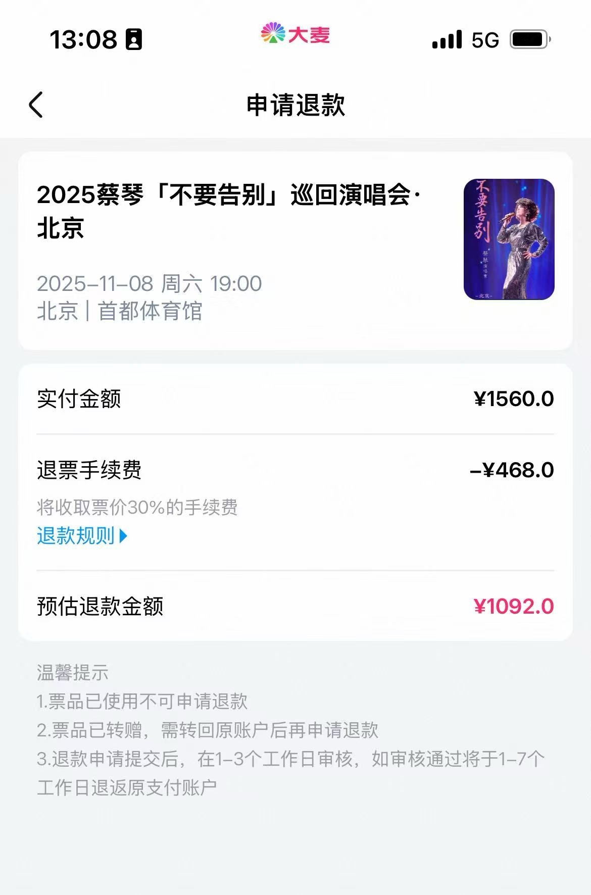 只能退票了…[泪] (不能换人去)