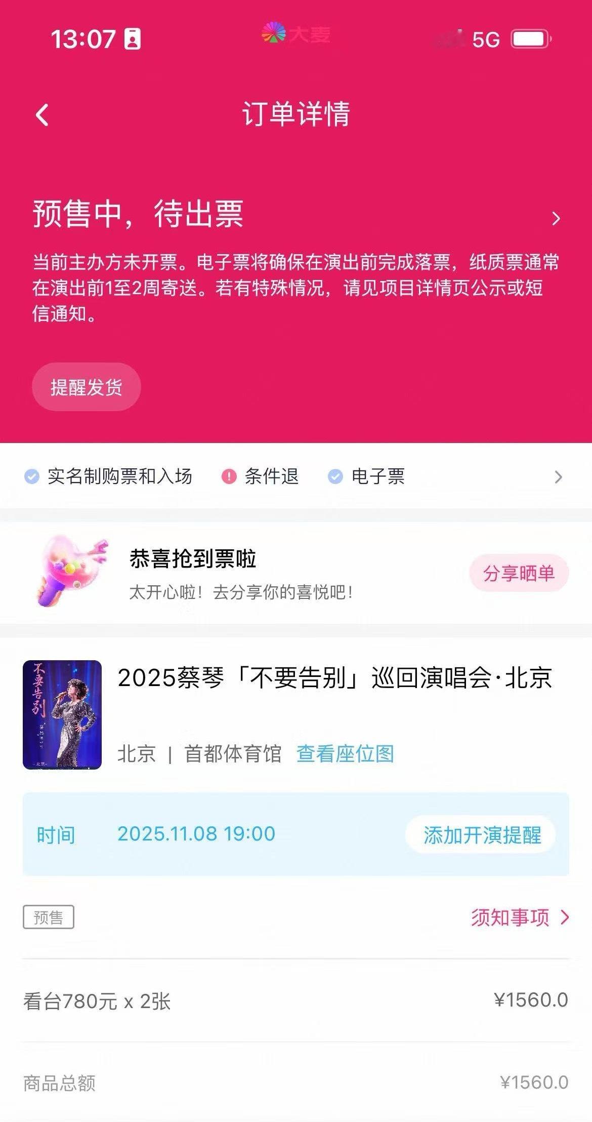 9月份抢到了蔡琴的北京演唱会